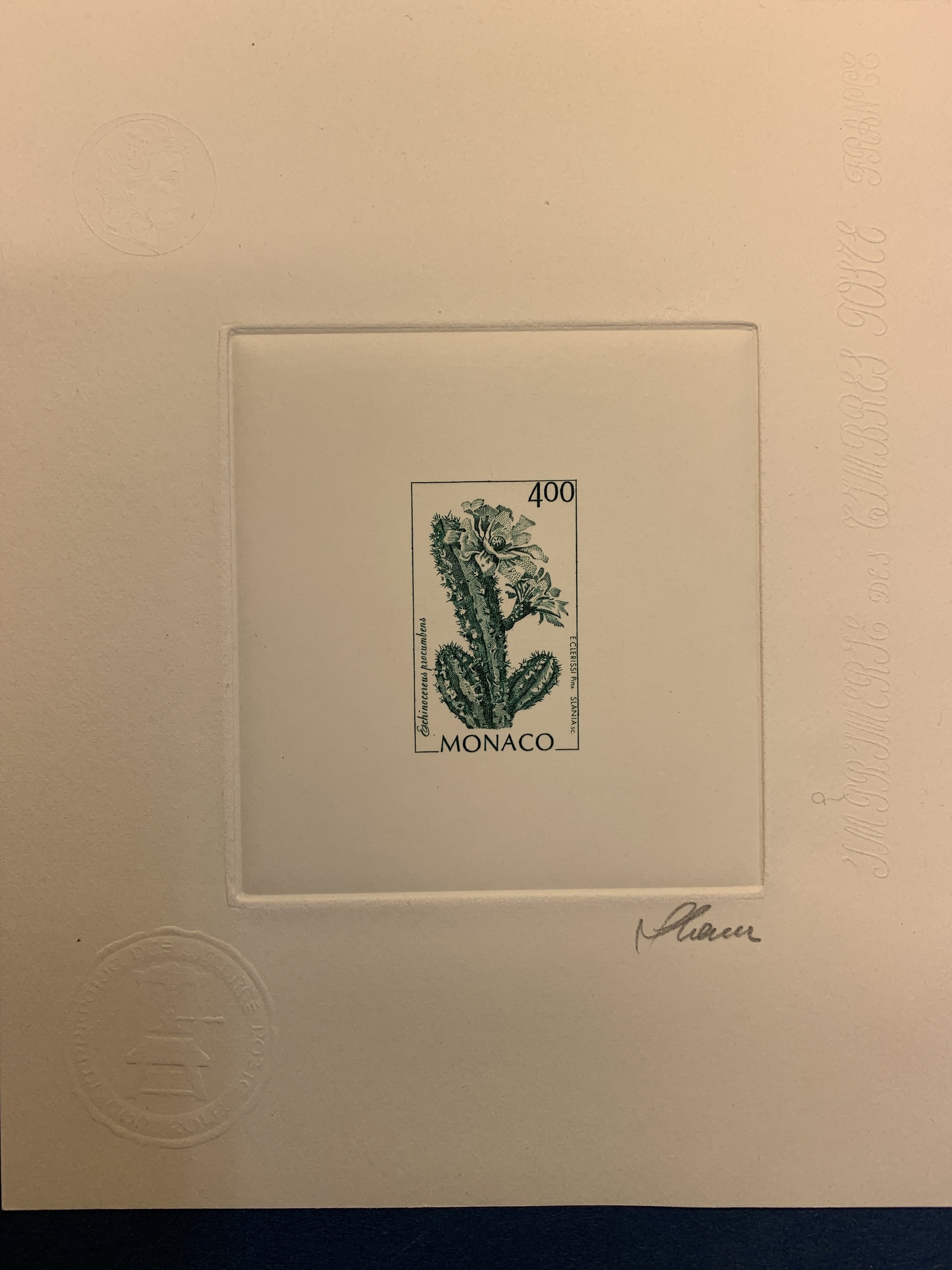 Monaco. Michel 2158–61 (★), 1994 Succulents SET (4). Plate proofs in green. All signed "Slania".