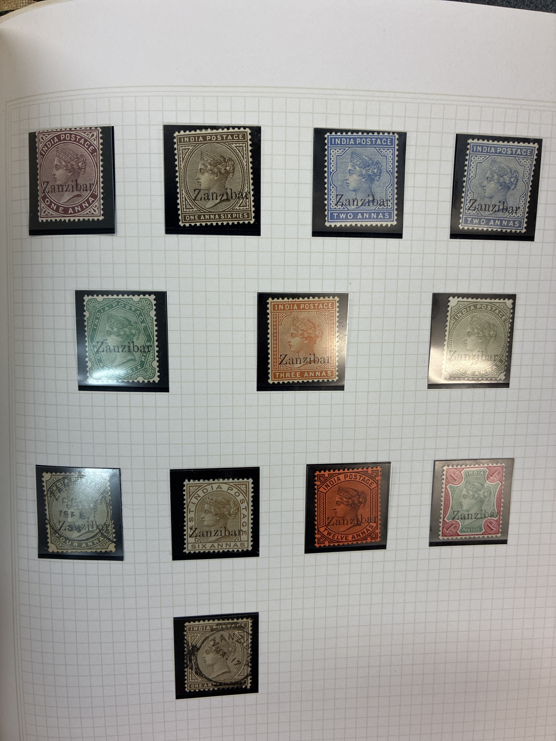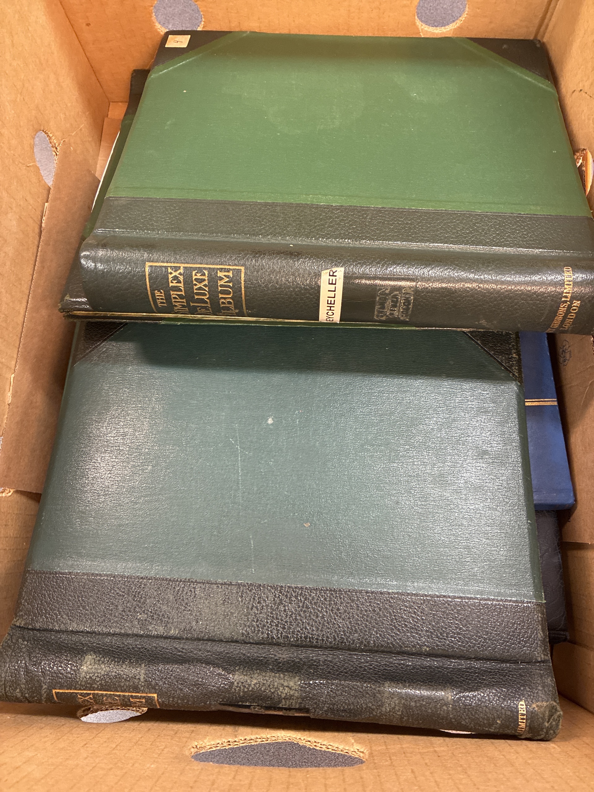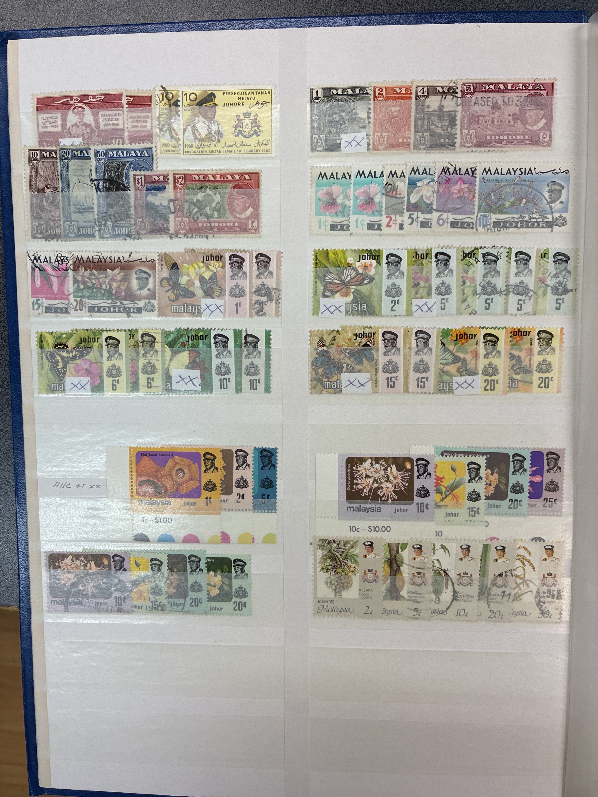 ALL WORLD. ★★/★/⊙. Box with six albums and stockbooks with British colonies with Zanzibar, Malayan states, Seychelles, St. Helena, Greece and a very fine Leuchturm album Australia 2001–2006 with stamps up to 2004. Approx. 9 kg.