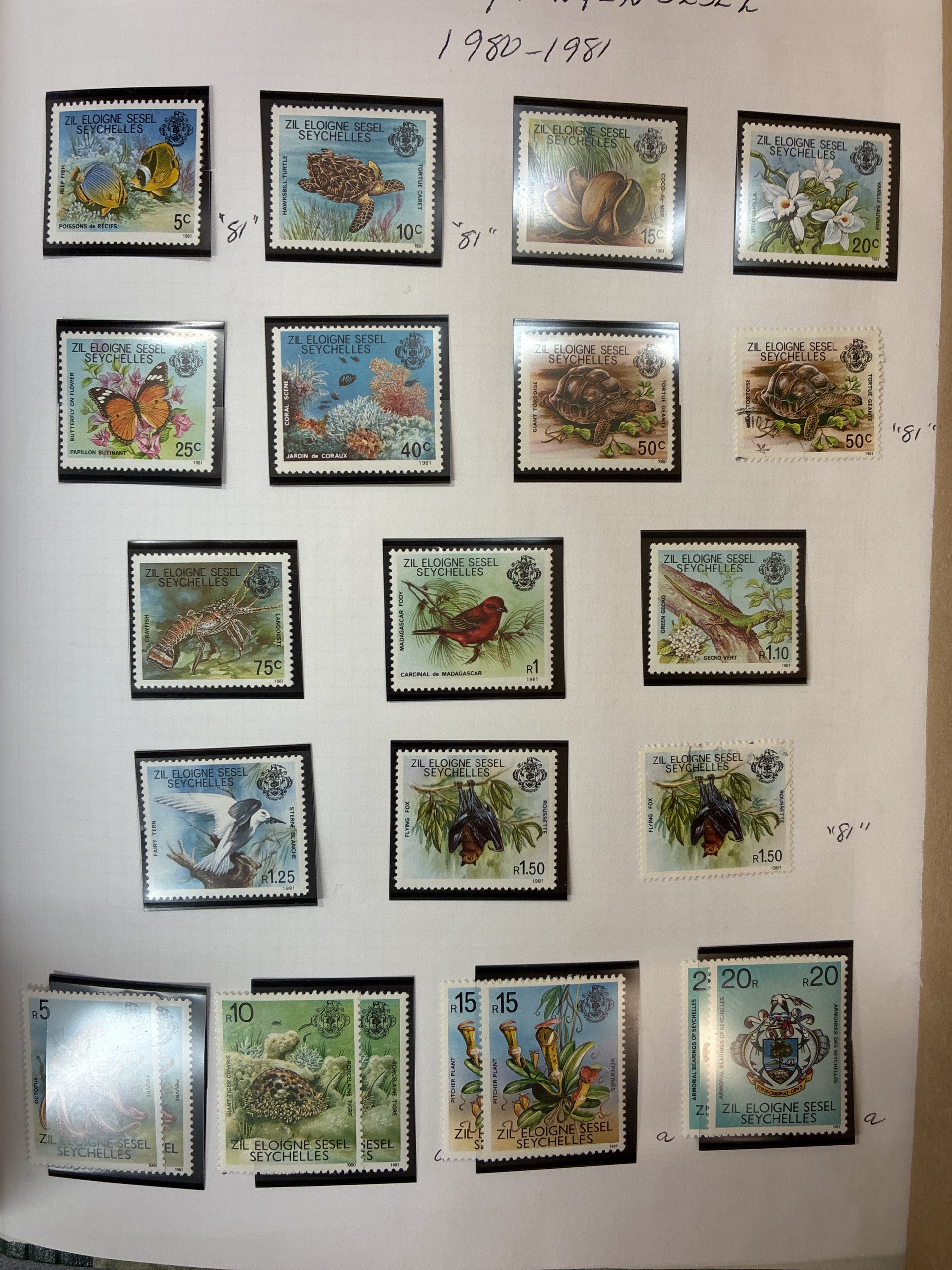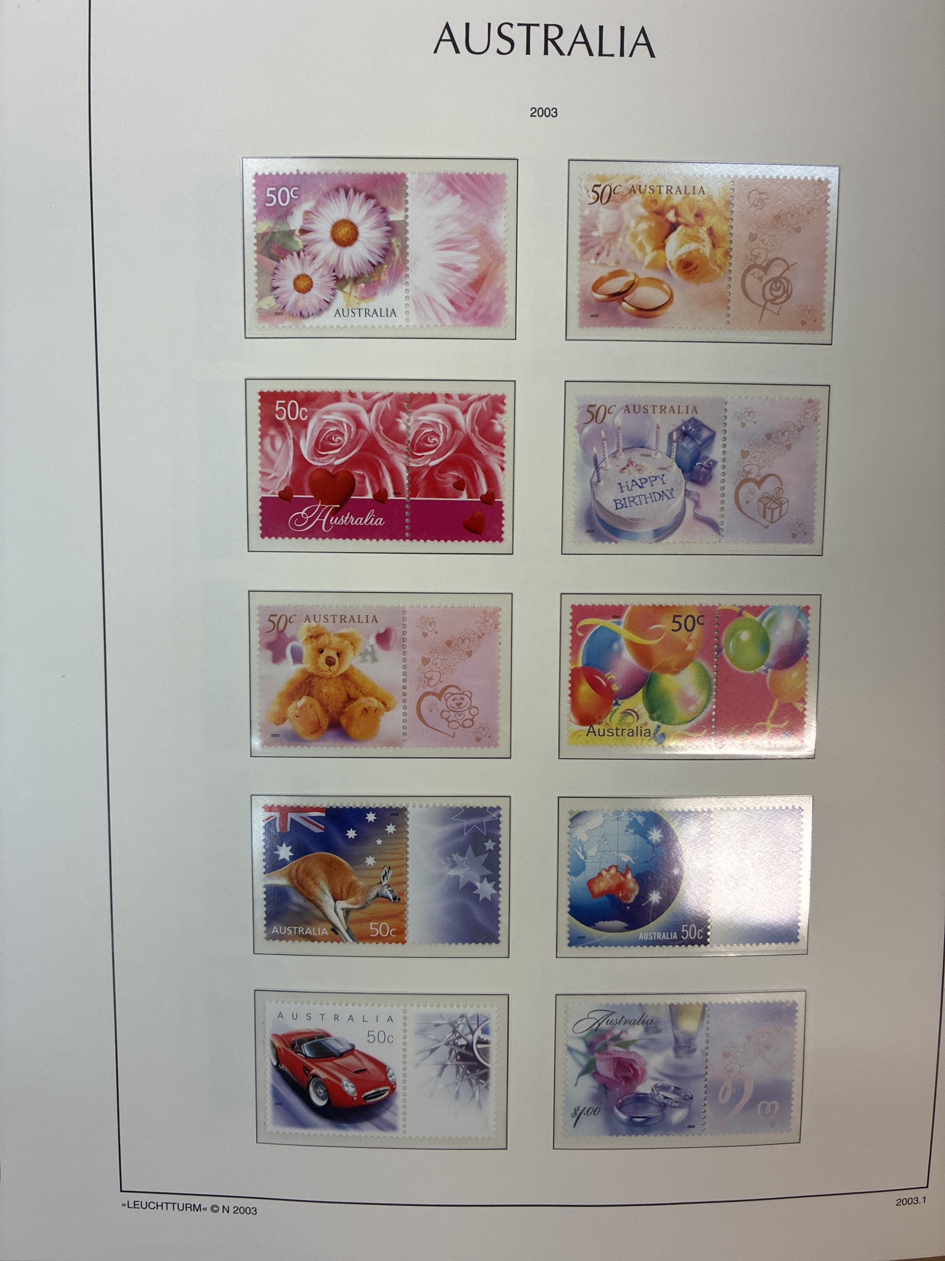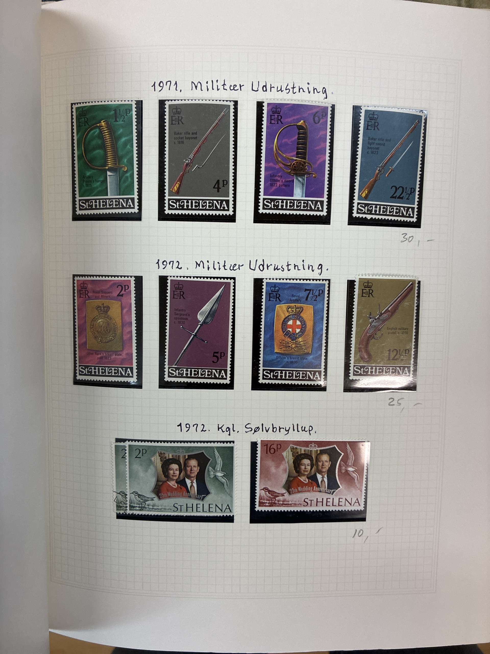 ALL WORLD. ★★/★/⊙. Box with six albums and stockbooks with British colonies with Zanzibar, Malayan states, Seychelles, St. Helena, Greece and a very fine Leuchturm album Australia 2001–2006 with stamps up to 2004. Approx. 9 kg.