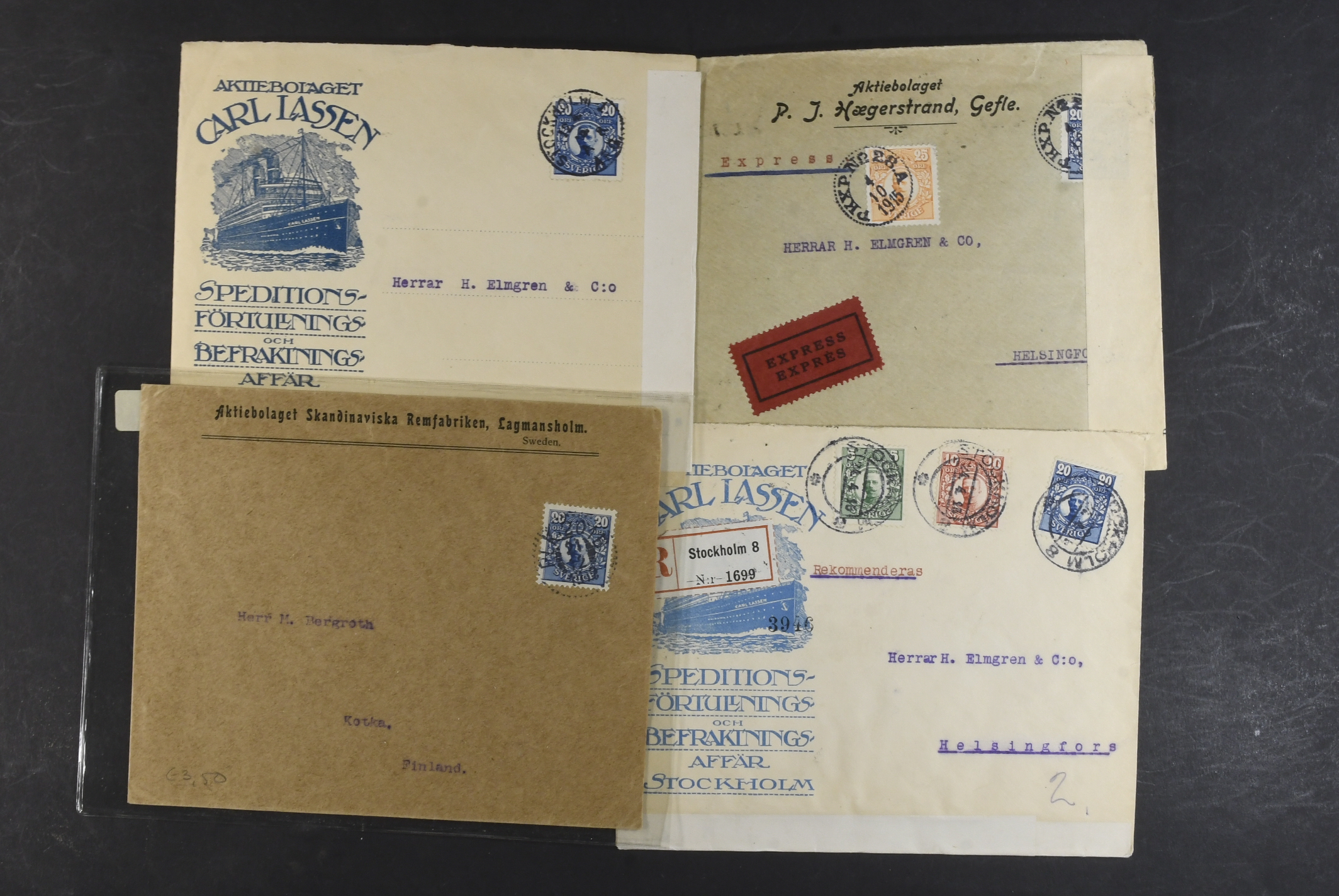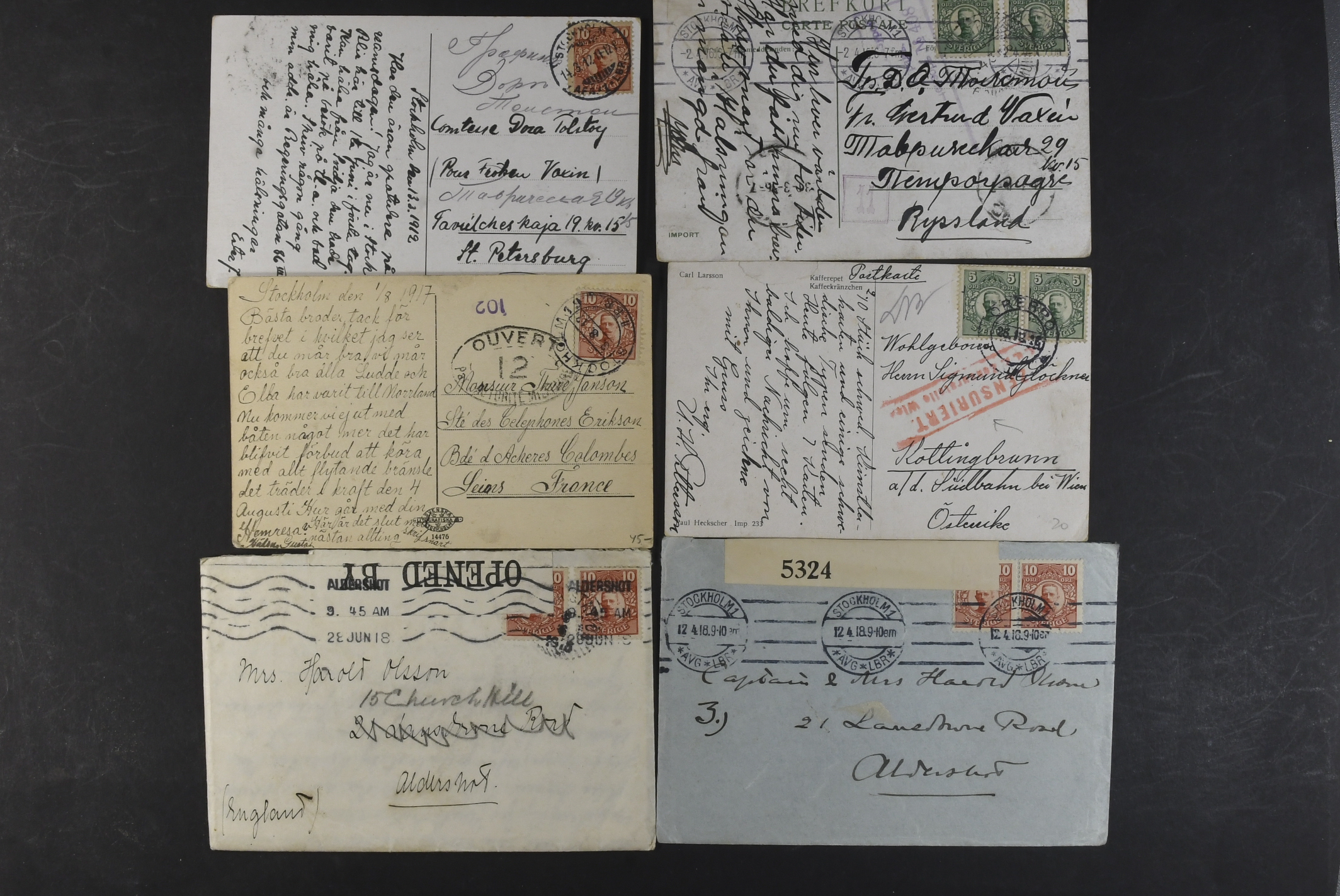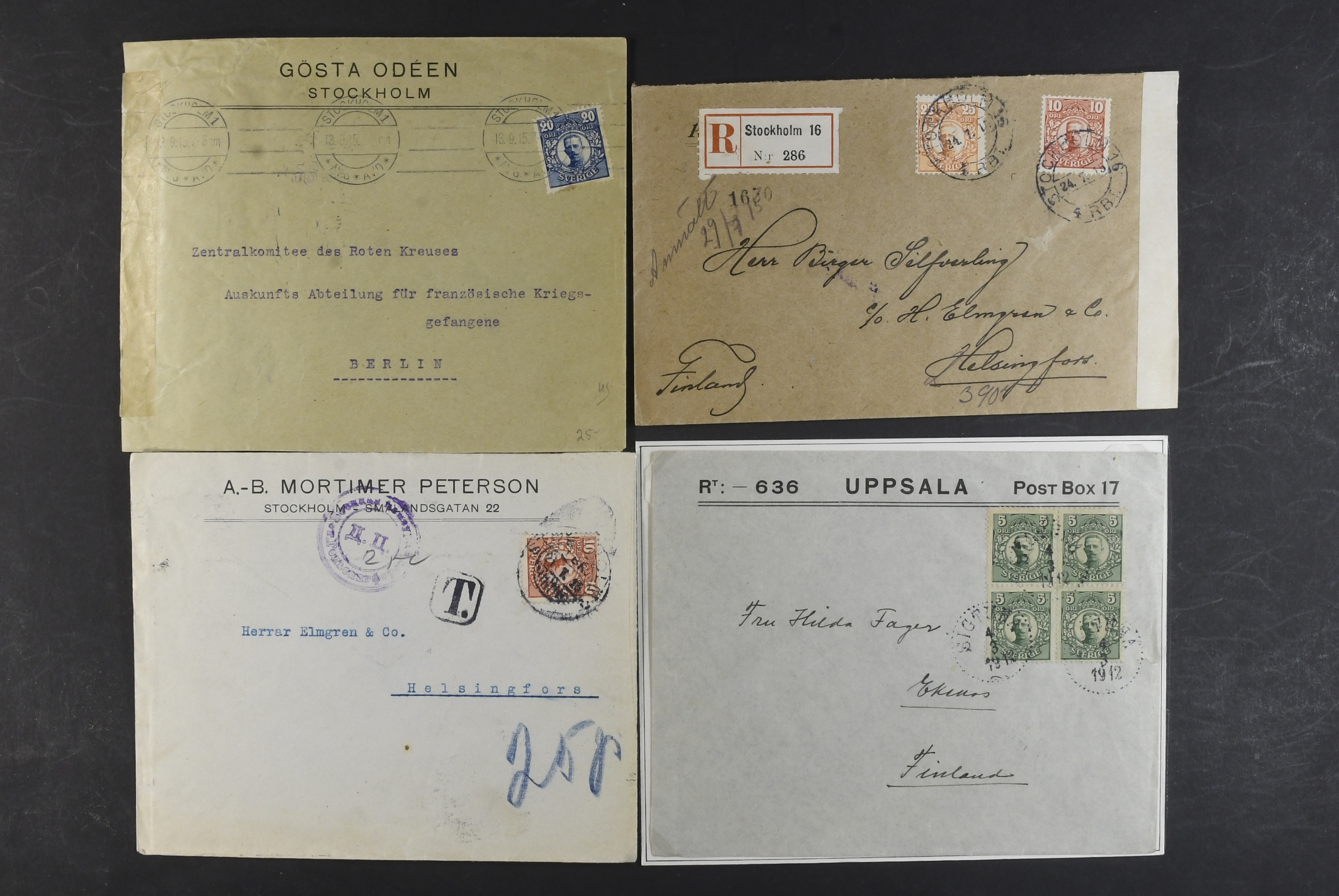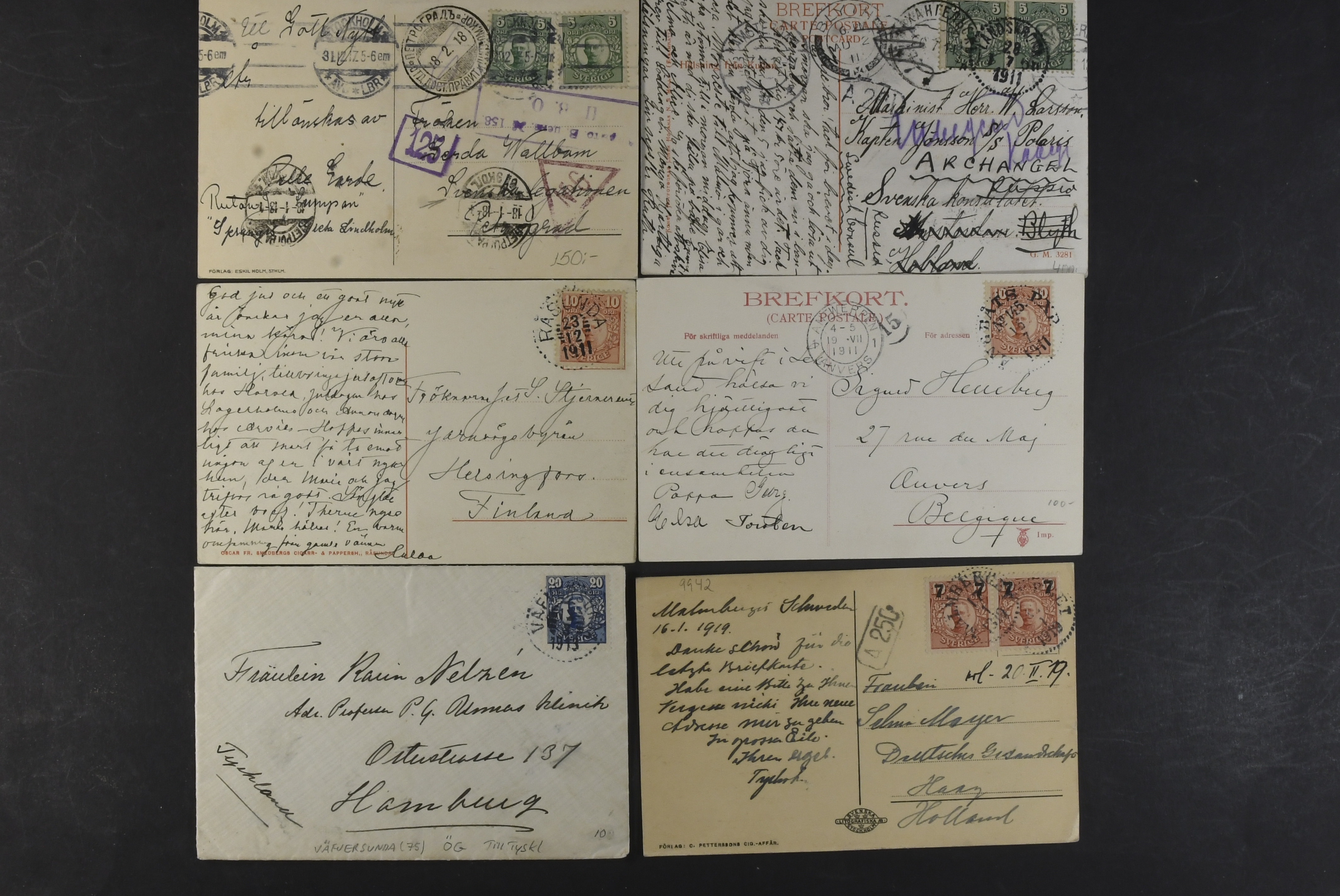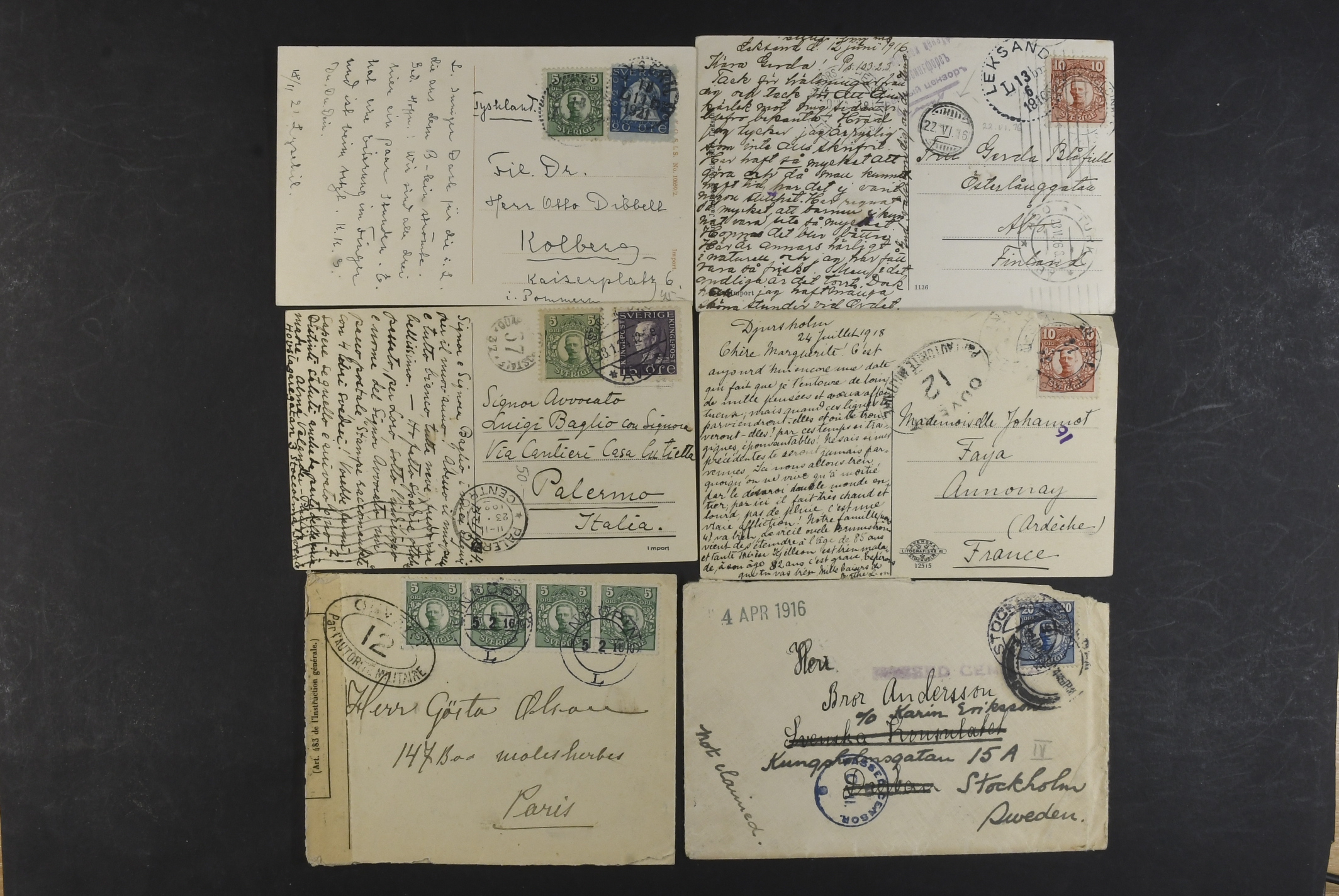 Sweden. Collection covers DESTINATIONS Gustaf V in Medallion. Mostly covers and cards, all sent to Europe, incl. several censored ones, a few additional services, advertisment, etc. (60)