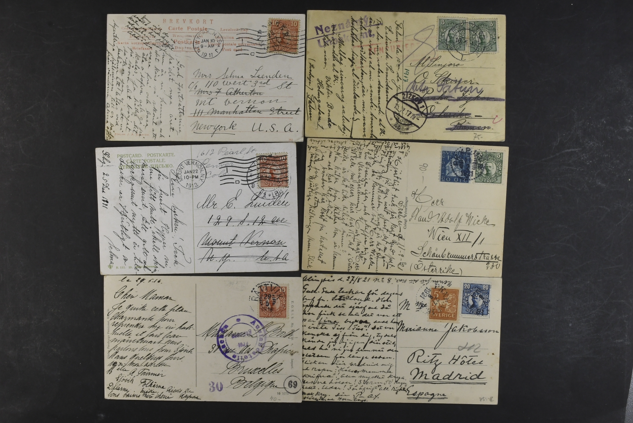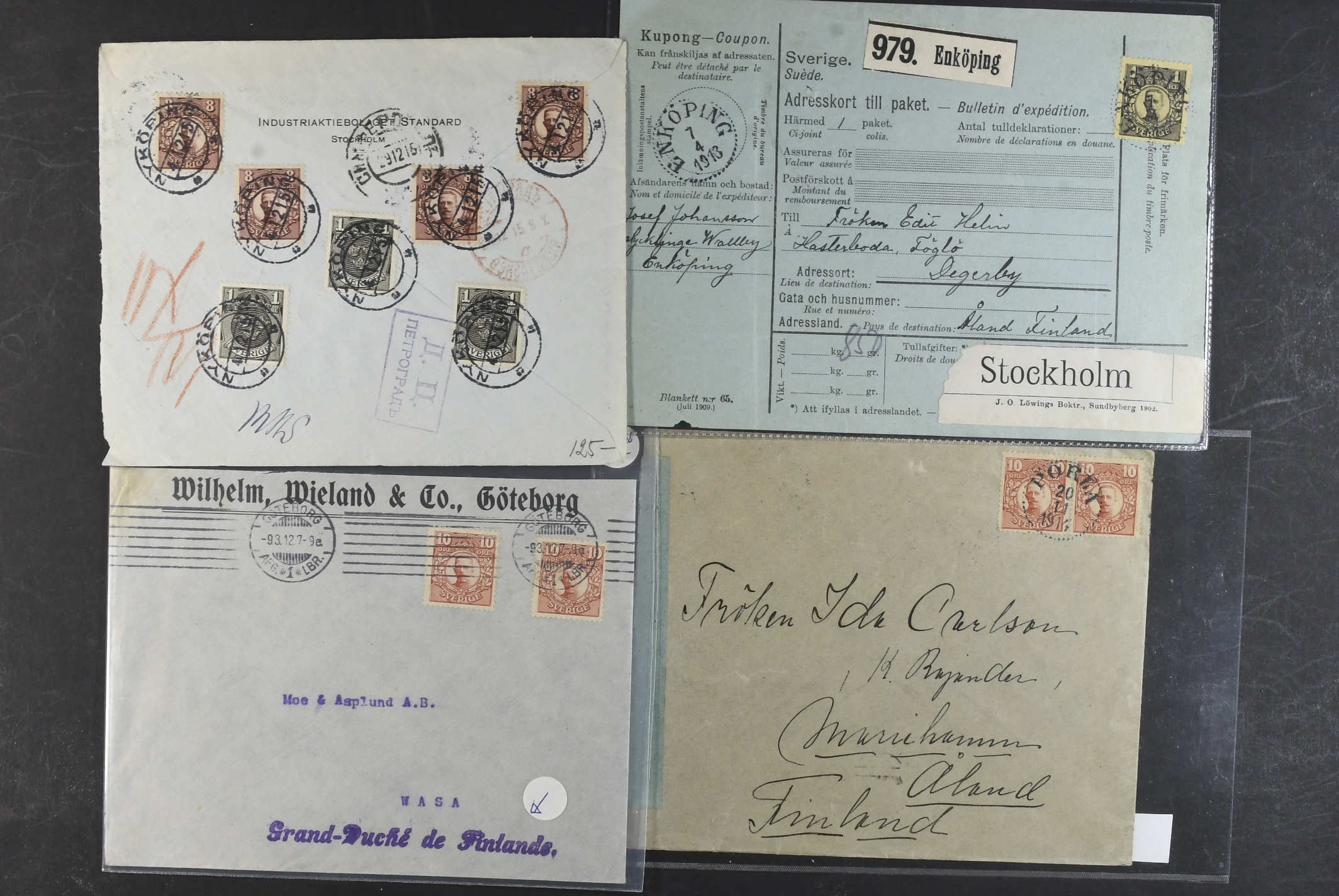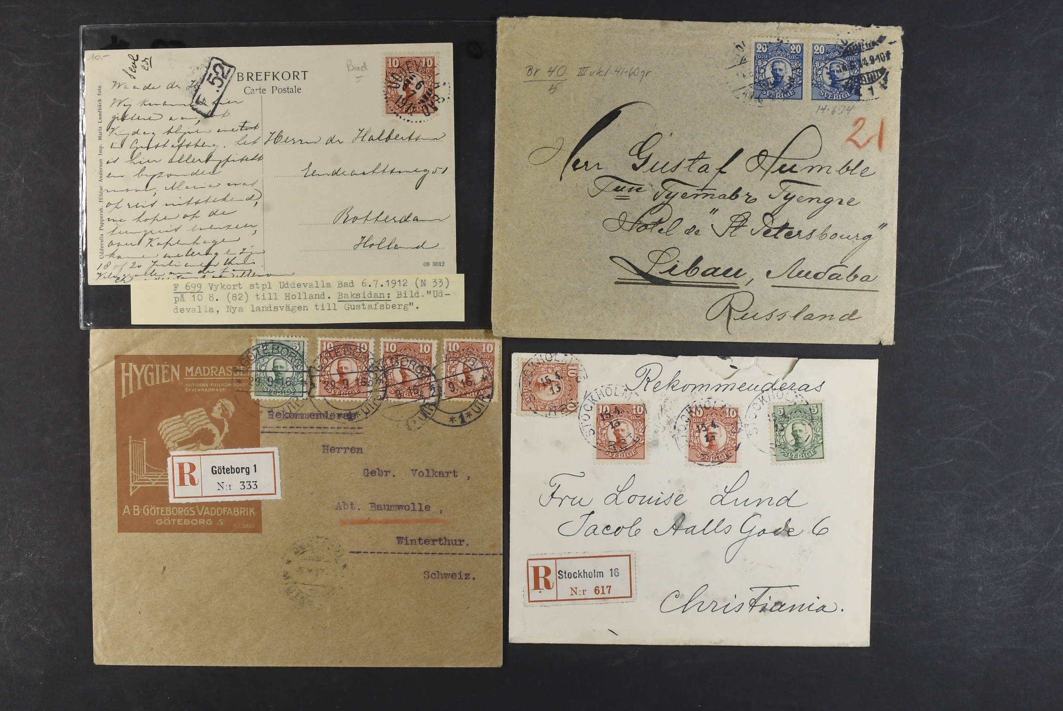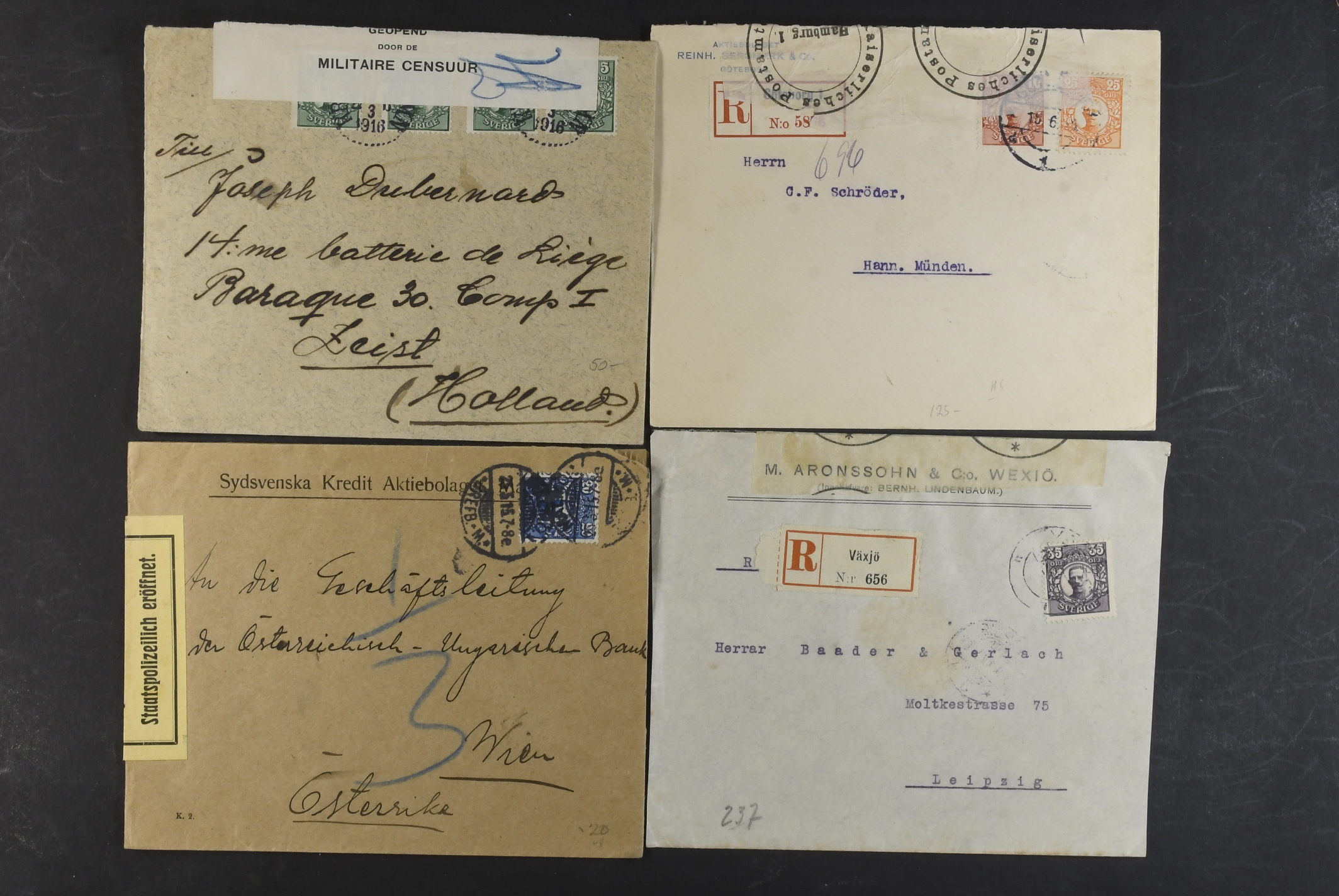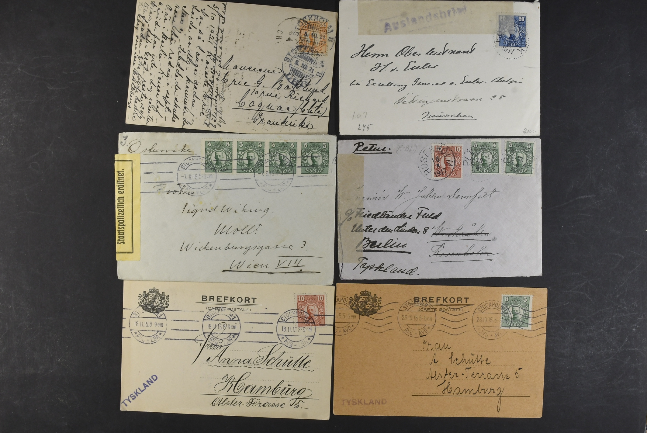 Sweden. Collection covers DESTINATIONS Gustaf V in Medallion. Mostly covers and cards, all sent to Europe, incl. several censored ones, a few additional services, advertisment, etc. (60)