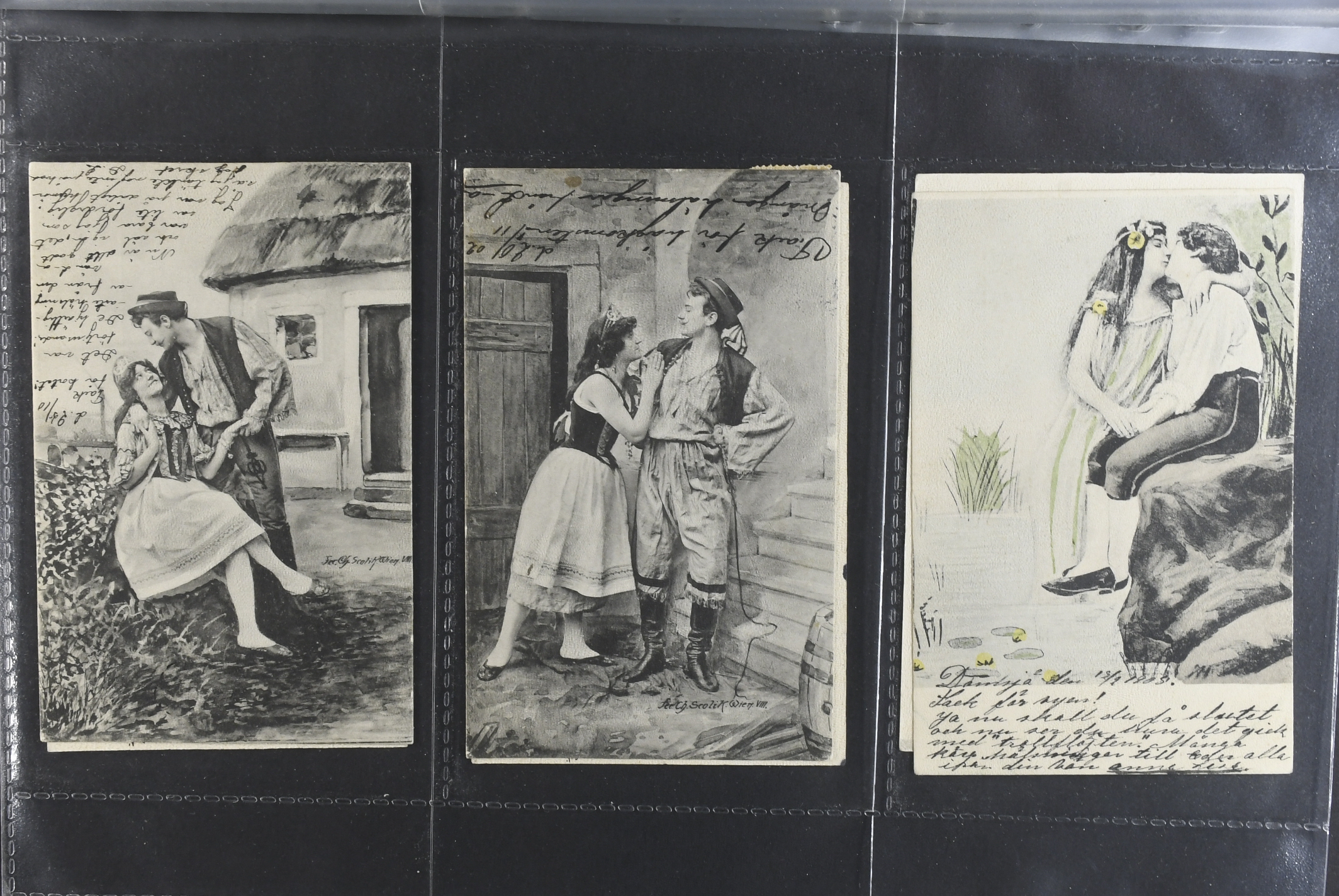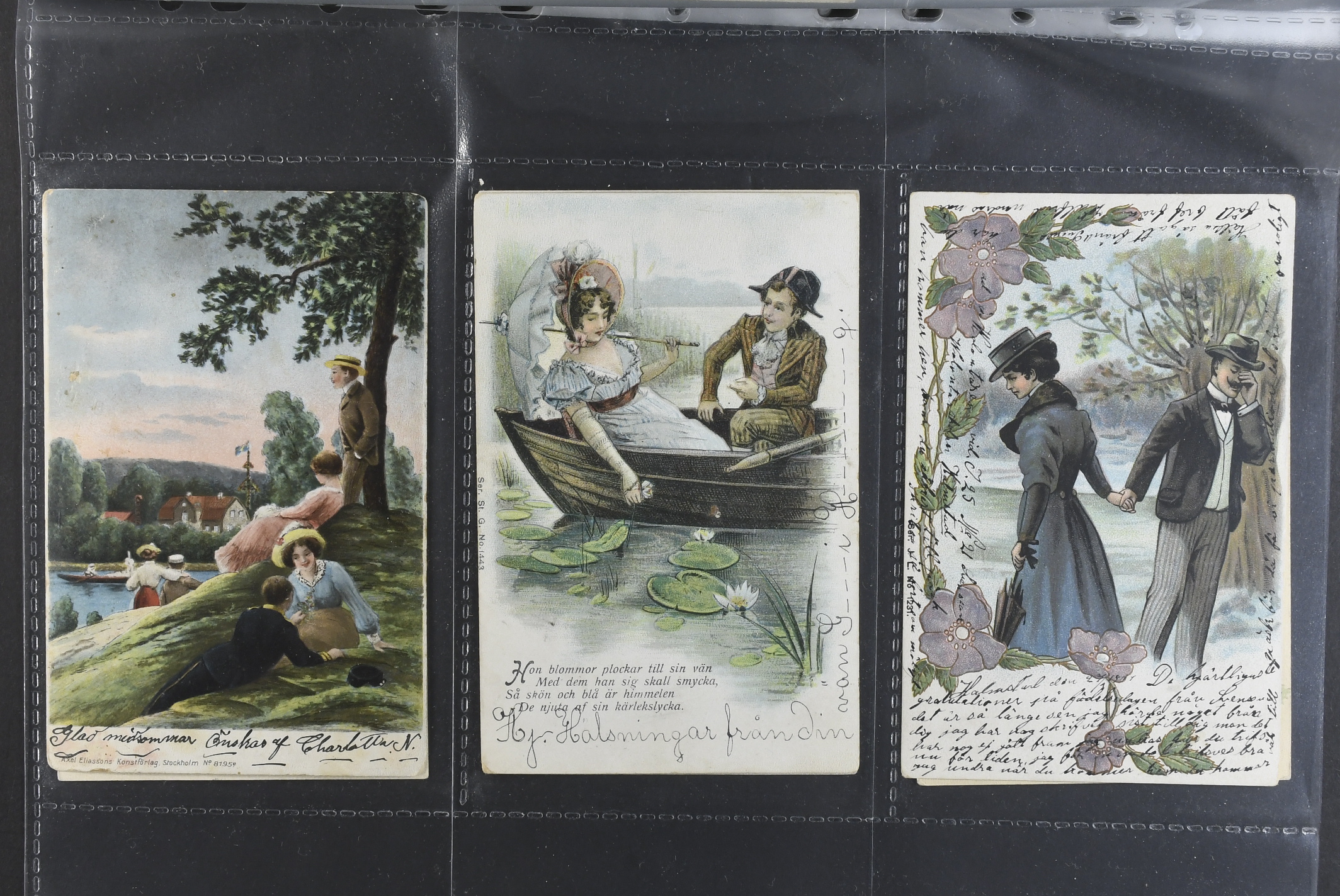 Sweden. Picture postcards, collection in album. Romance. 290 postcards with undivided backs, from Sweden and abroad. Fine quality.