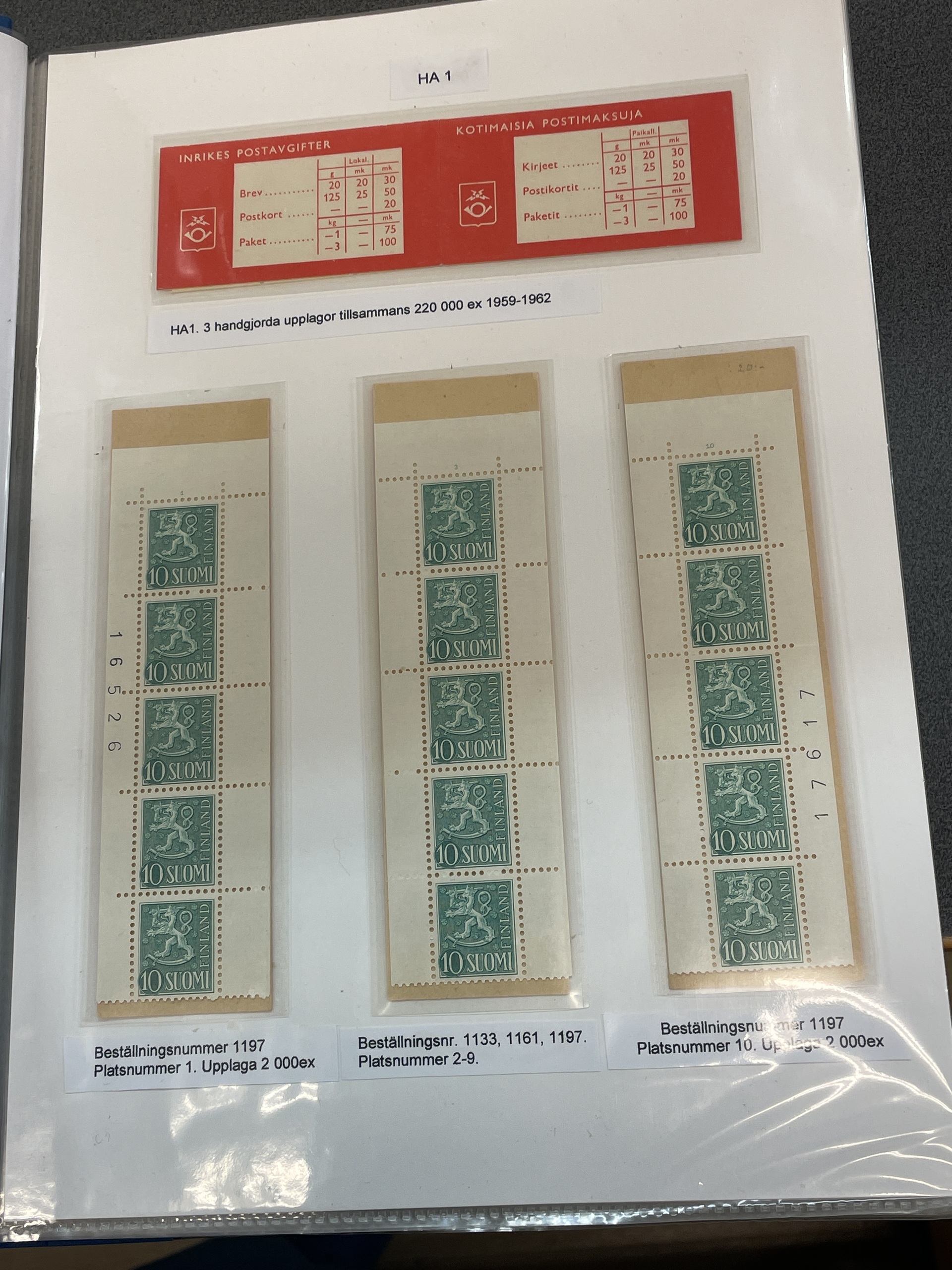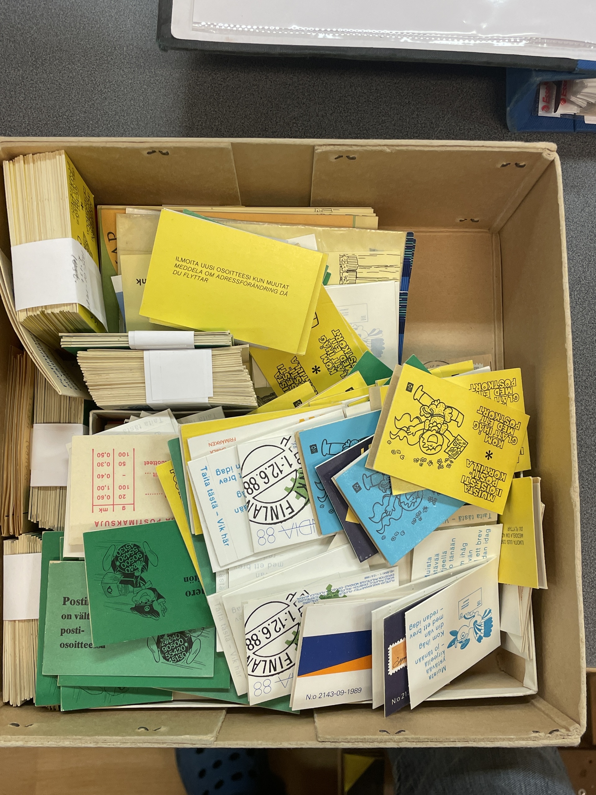 Finland. Booklets, accumulation 1930– in box. 100s of booklets, slot machine booklets etc in one album and one box. Special marks are found. Please explore. Fine quality.