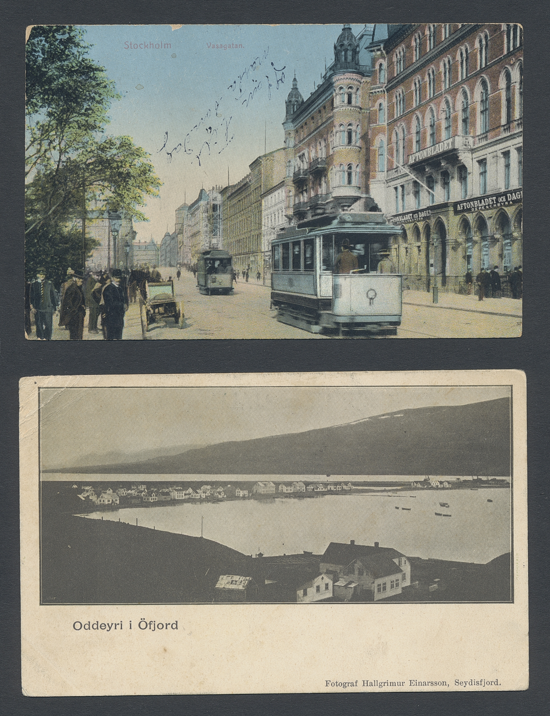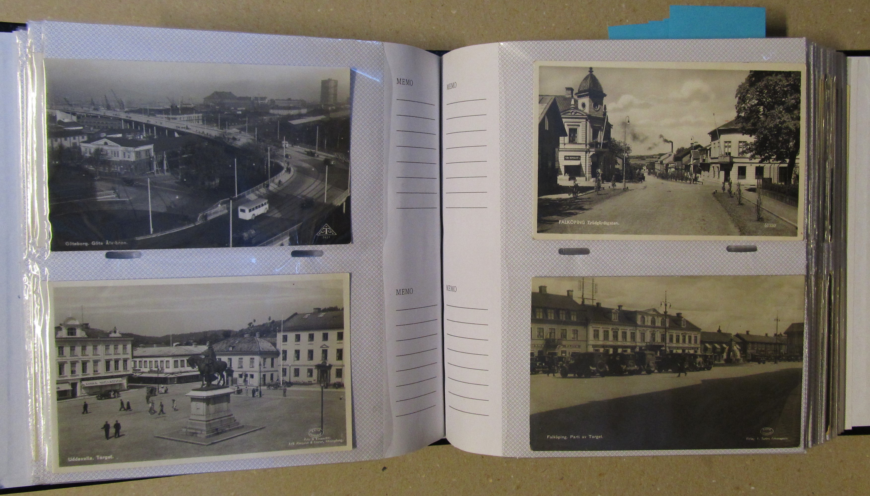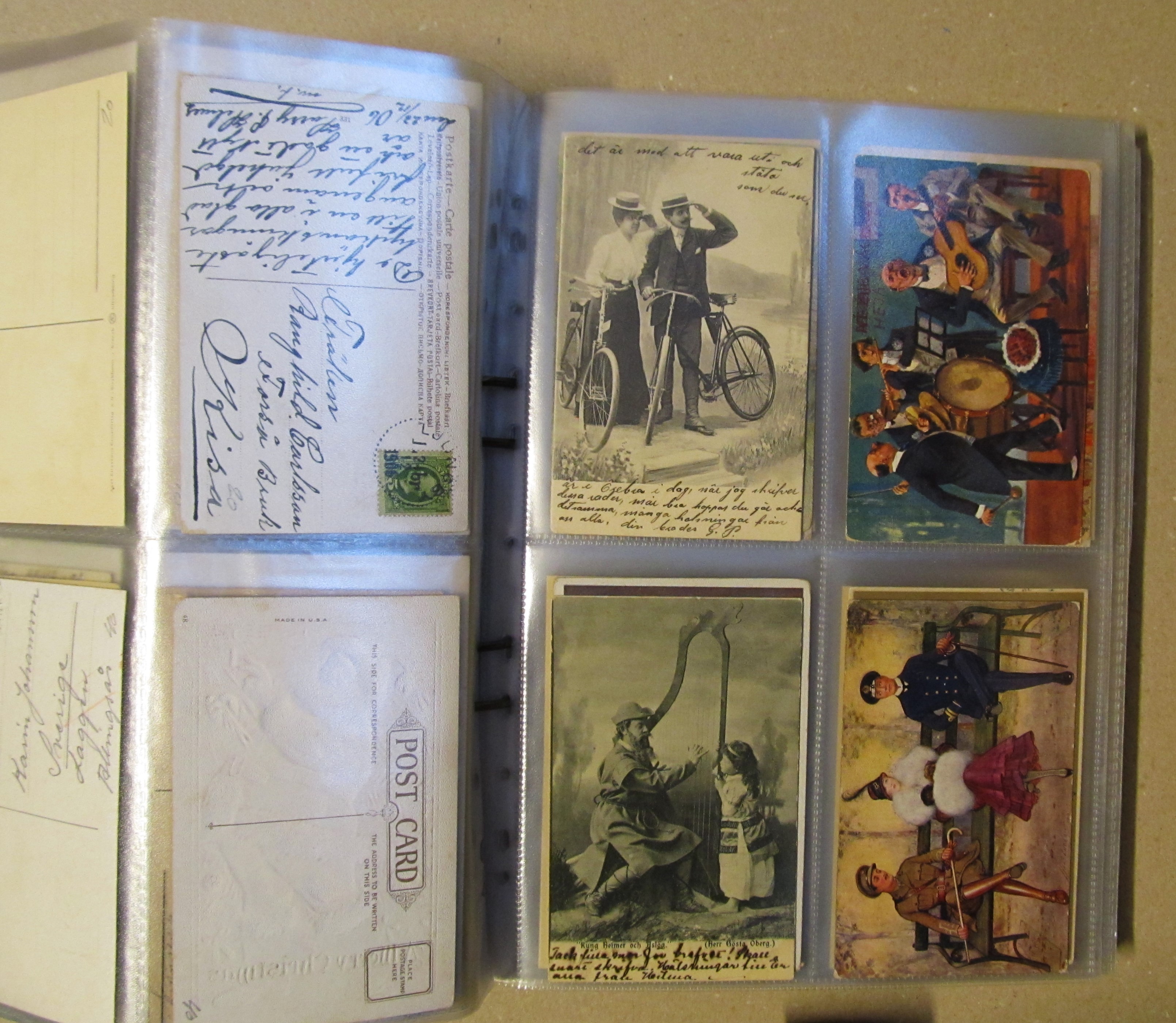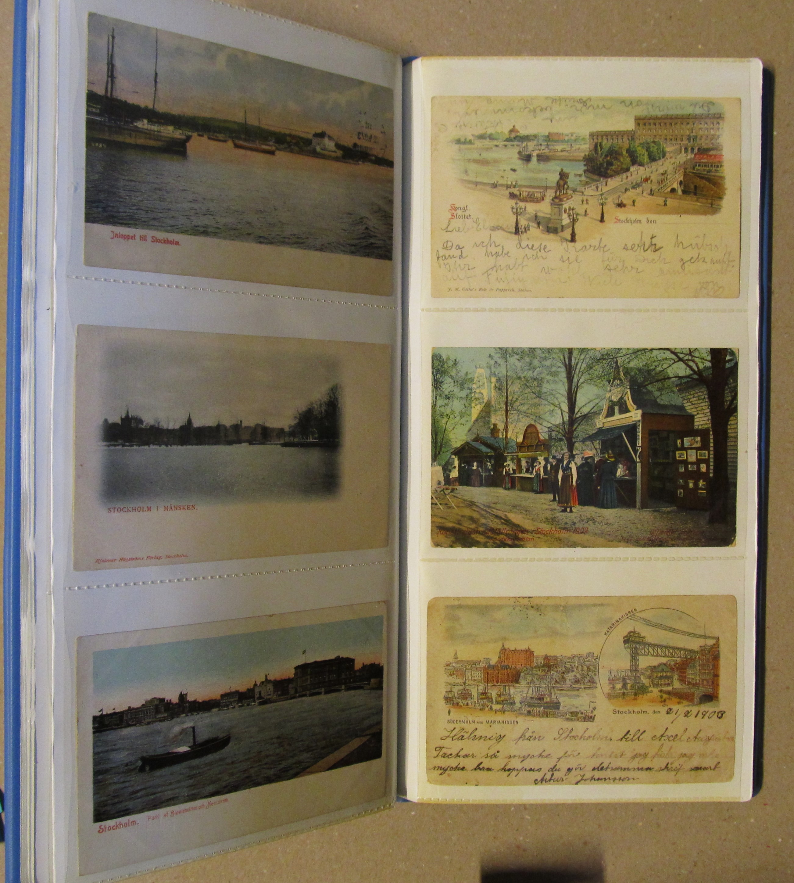 ALL WORLD. Picture postcards, accumulation old to modern in seven albums. About 700, incl 500 old size with topographical in vast majority whereof a large part are Swedish. Some scans are presented at www.philea.se. Approx. 8 kg. (700)