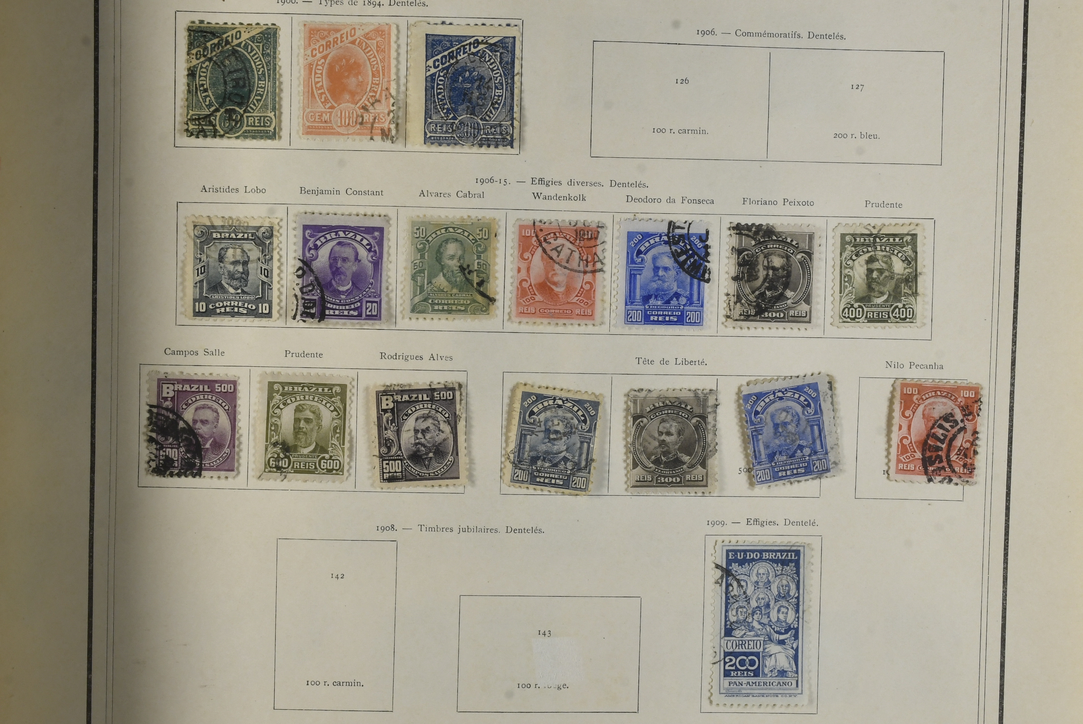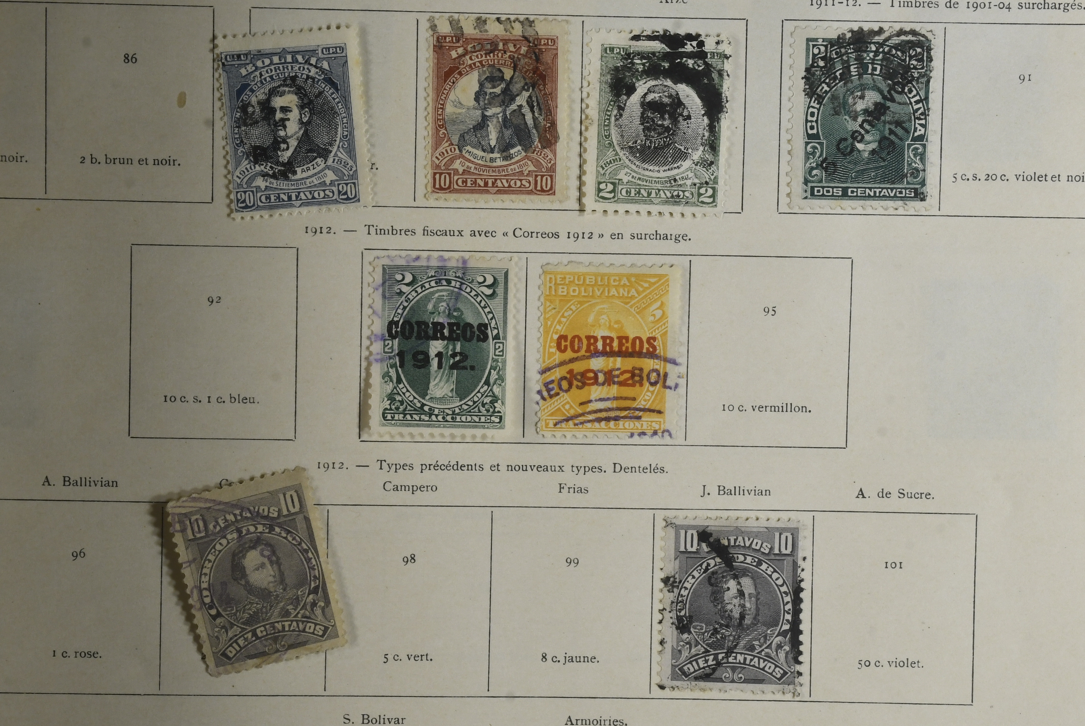 ALL WORLD, SOUTH AMERICA. Collection mostly used 1870–1930 in large album. Quite thin with stamps. Somewhat mixed quality. (ca. 400–500)