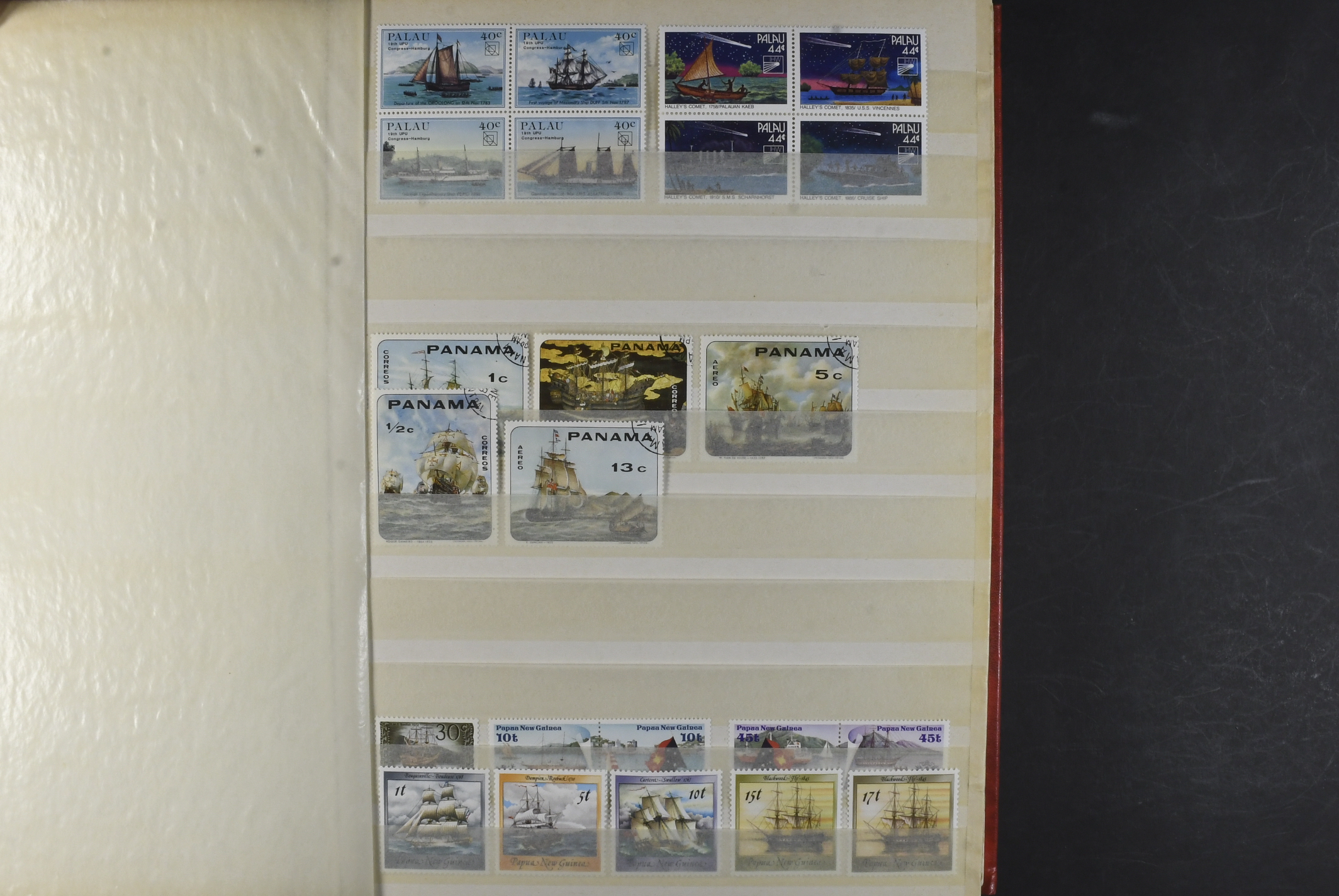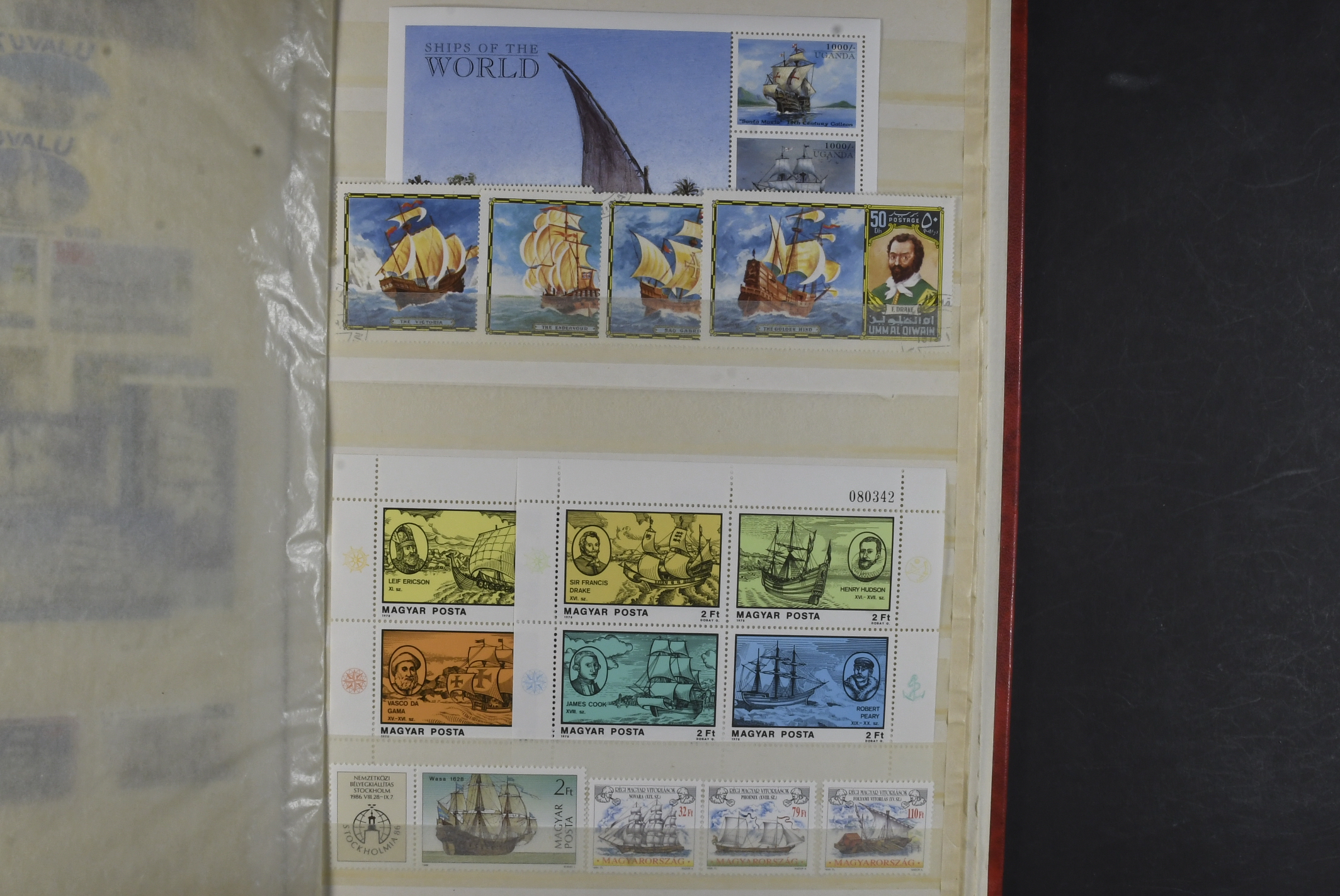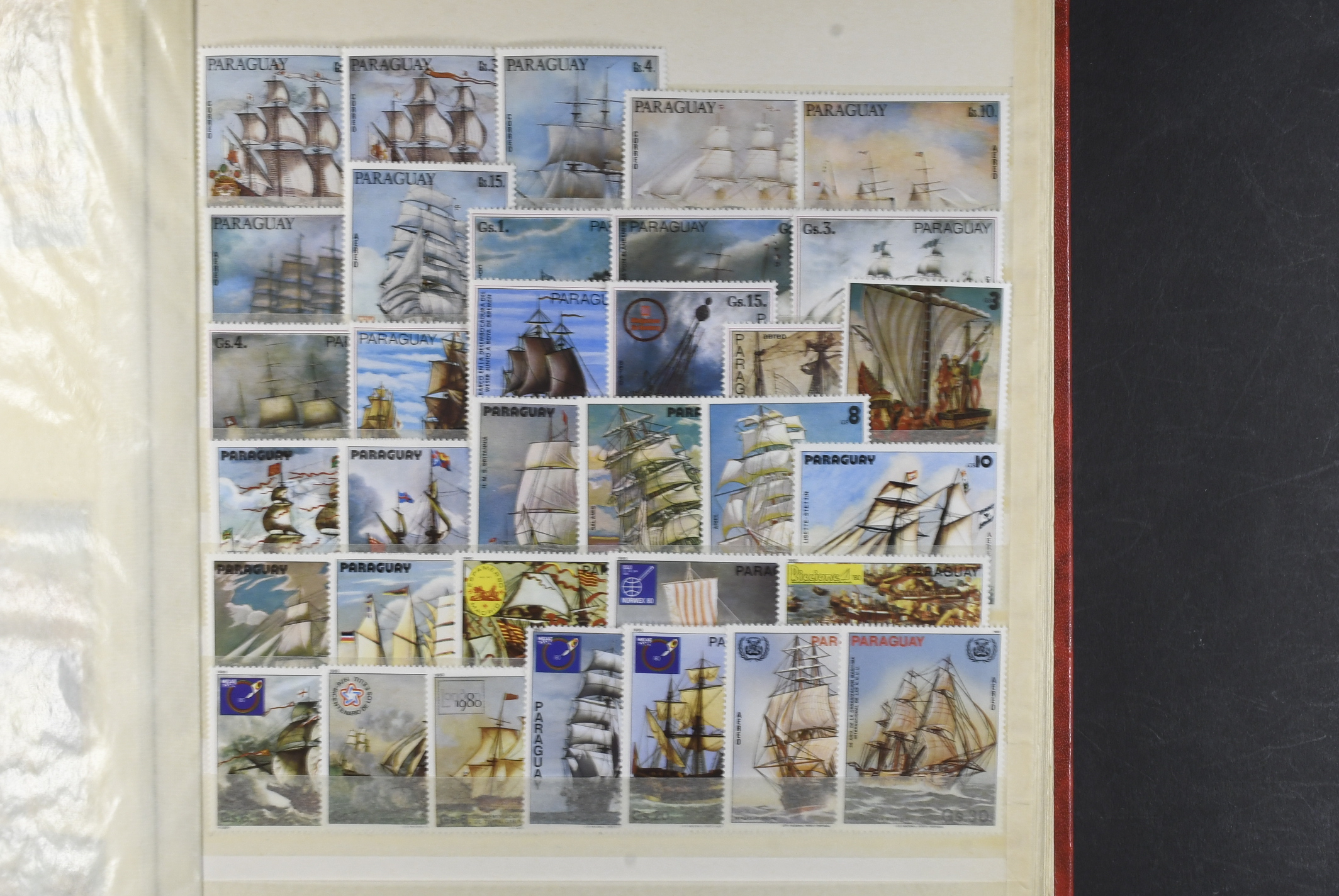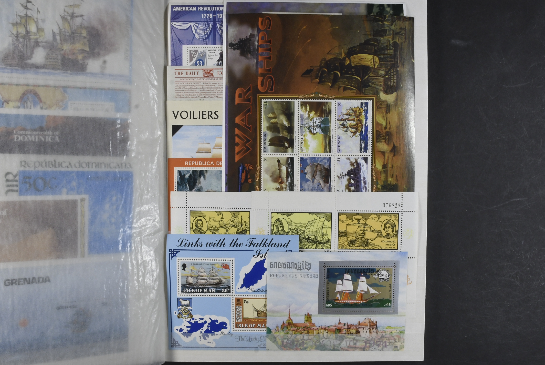 Thematics, Ships. Collection mostly ★★ mostly 1960s–2000s in three stockbooks. With many british colonies long sets but some sets might not be complete. Eight page stockbook with only souvernir sheets. Mostly fine quality. (1500–2000)