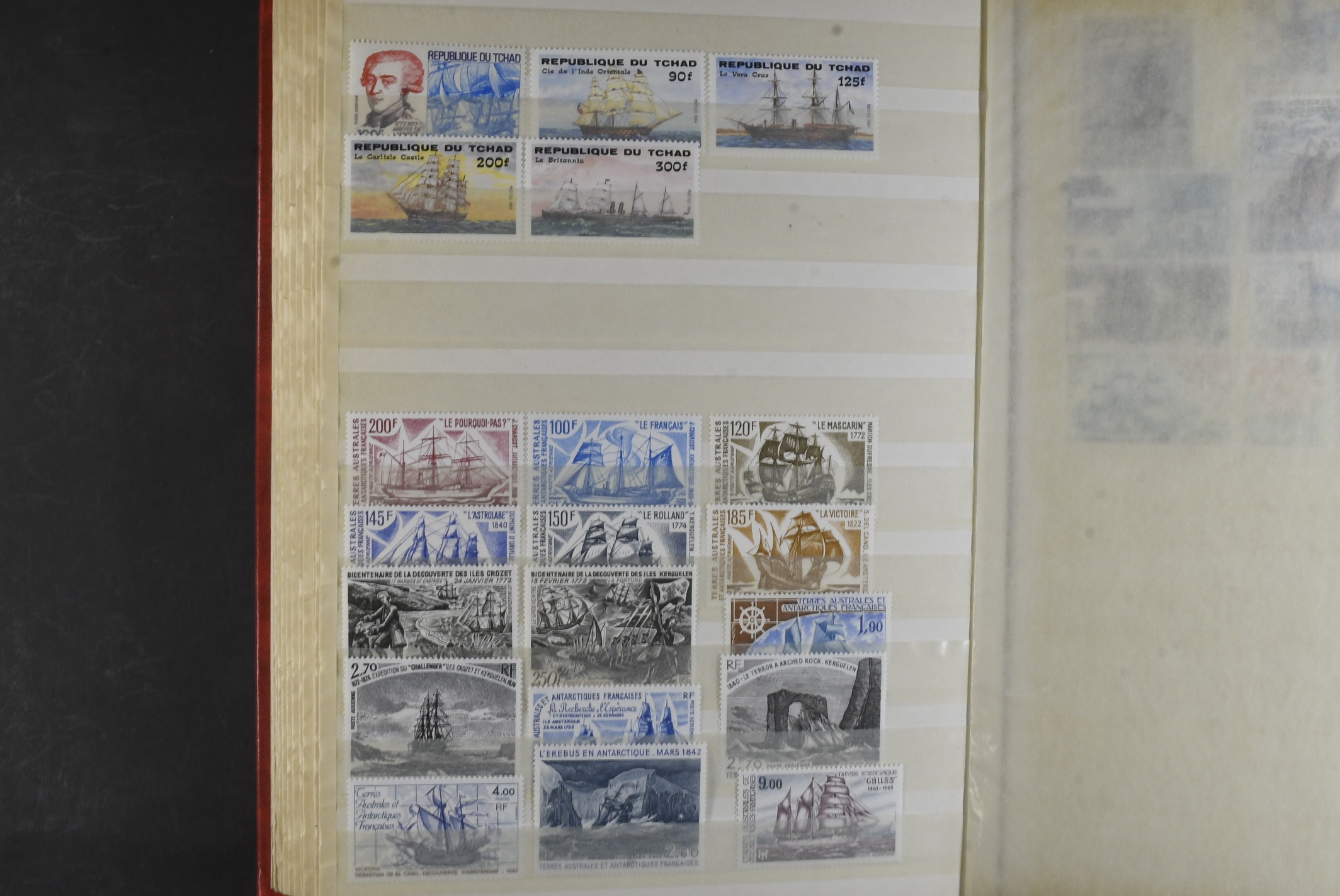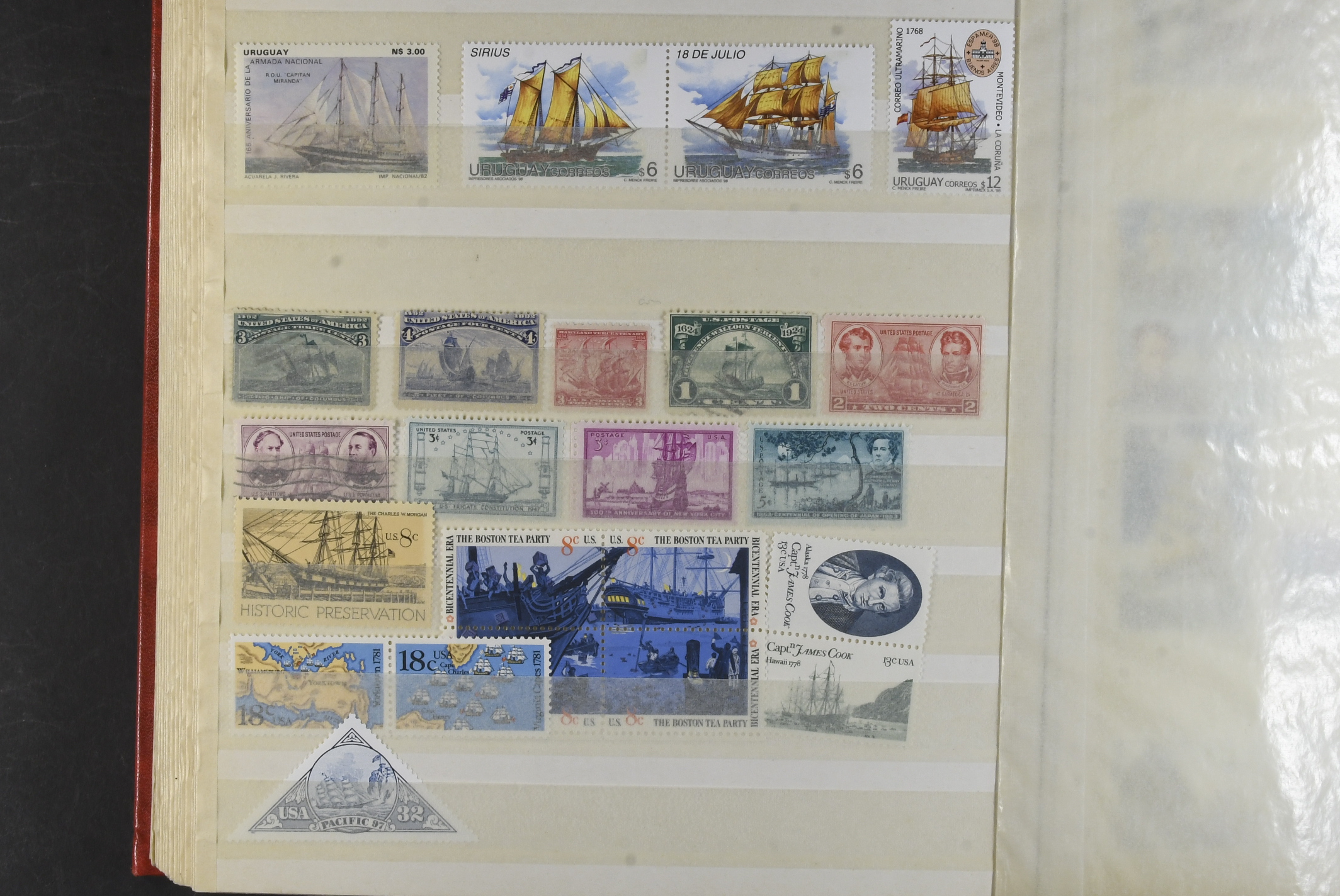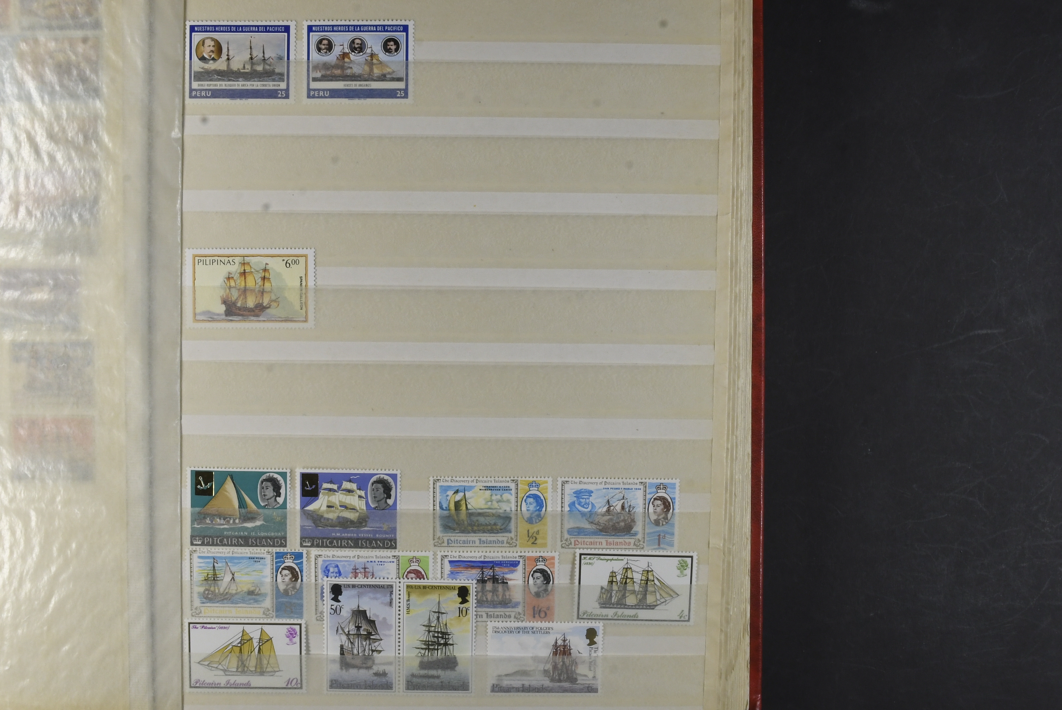 Thematics, Ships. Collection mostly ★★ mostly 1960s–2000s in three stockbooks. With many british colonies long sets but some sets might not be complete. Eight page stockbook with only souvernir sheets. Mostly fine quality. (1500–2000)