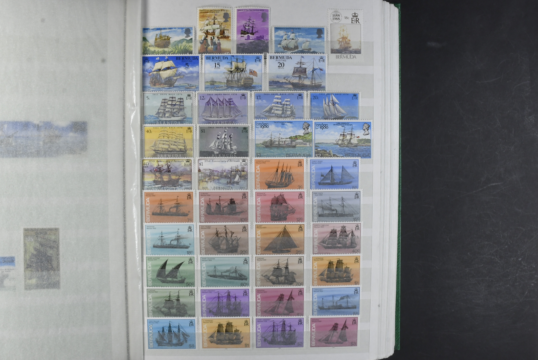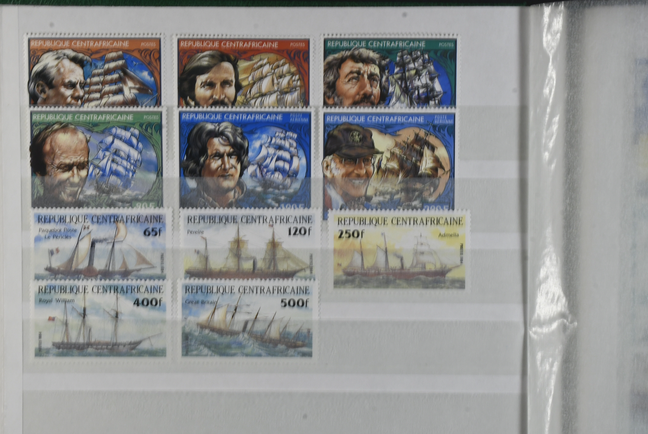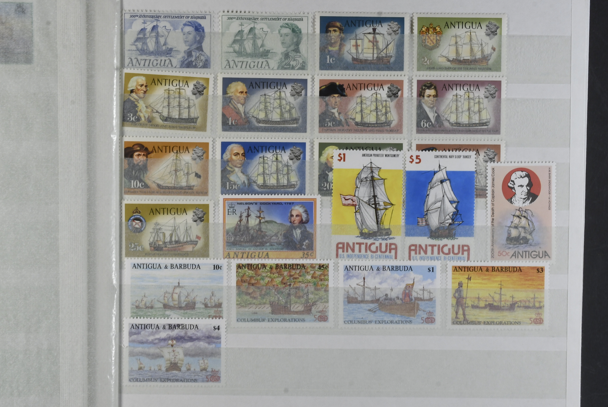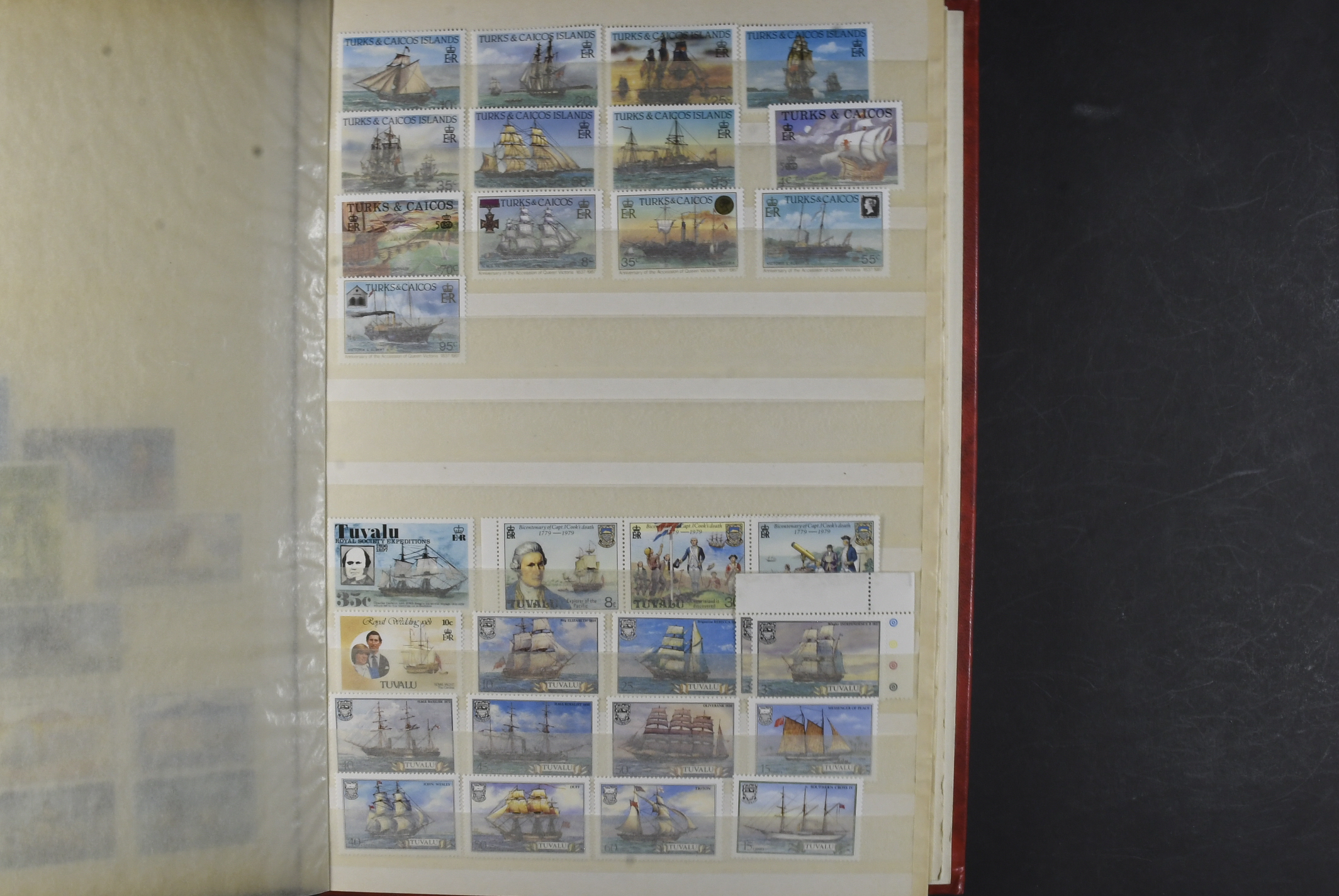 Thematics, Ships. Collection mostly ★★ mostly 1960s–2000s in three stockbooks. With many british colonies long sets but some sets might not be complete. Eight page stockbook with only souvernir sheets. Mostly fine quality. (1500–2000)