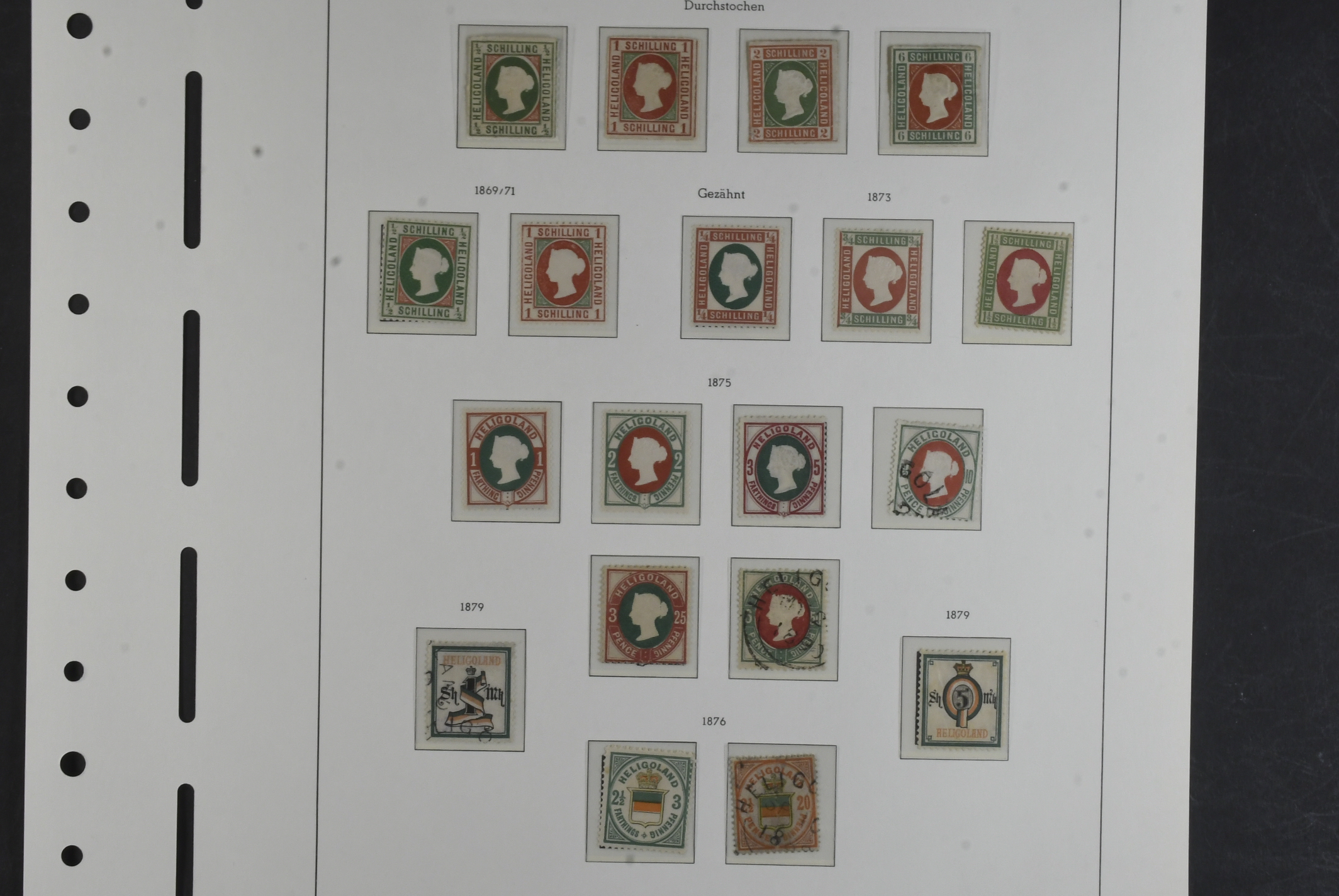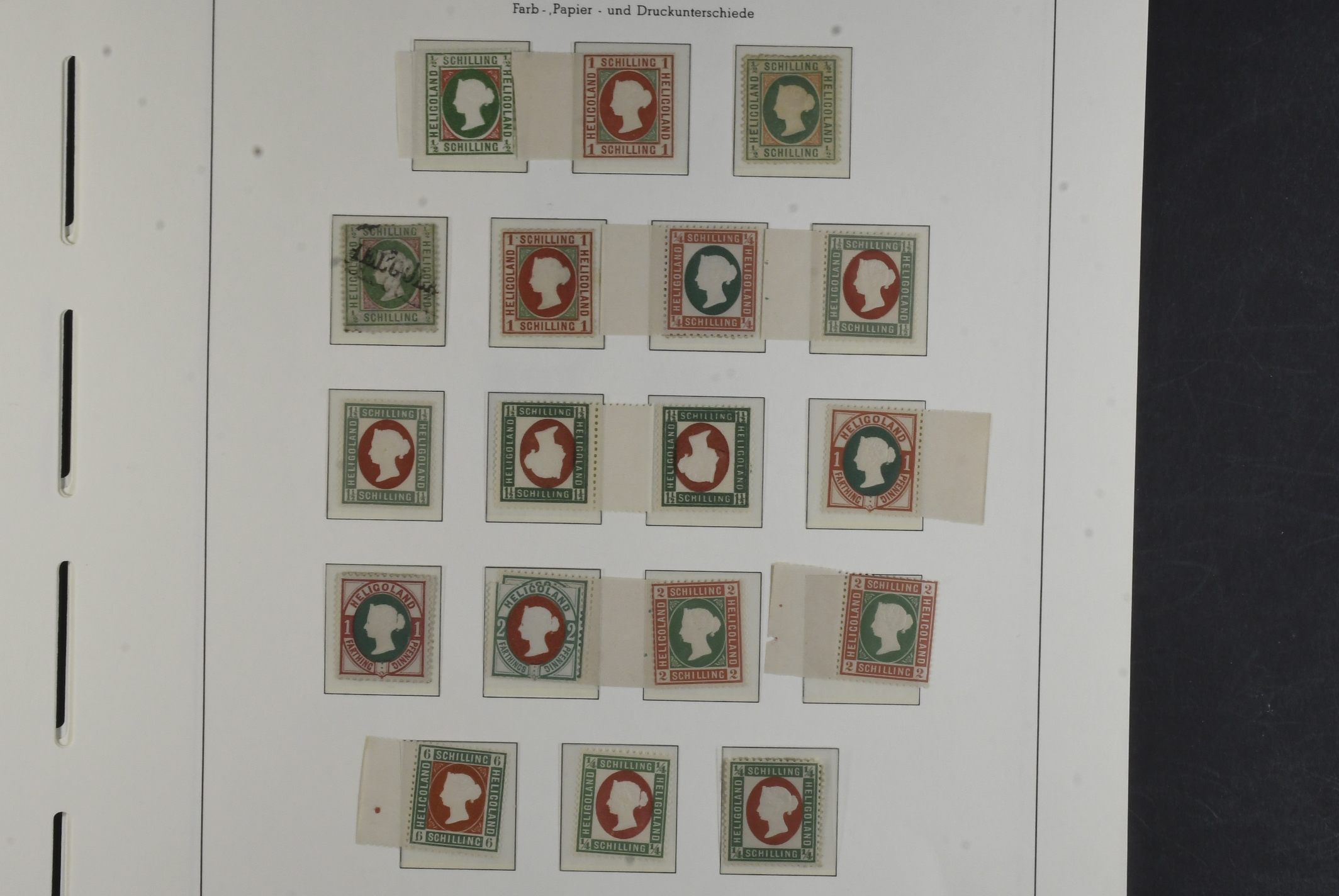 Germany, Heligoland. Collection ★/⊙ 1867–1889 on leaves. Mostly mint, incl. many reprints and a few fantasy stamps, but also a few originals. The entire lot is presented at www.philea.se. Somewhat mixed quality. (38)