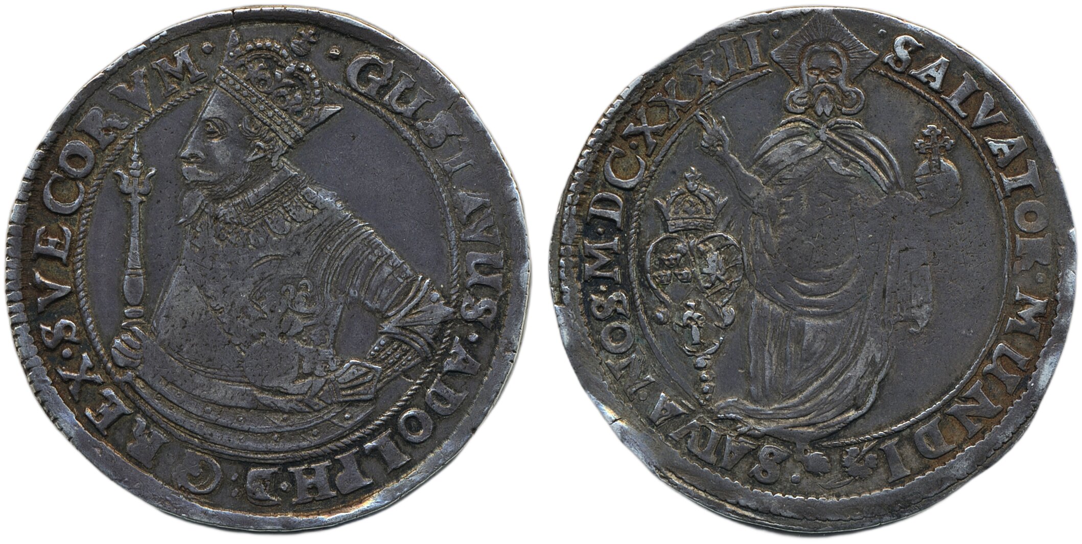 Coins, Sweden. Gustav II Adolf, SM 38b, 1 riksdaler 1632. 29.01 g. Stockholm. Partly weakly struck. 1+.