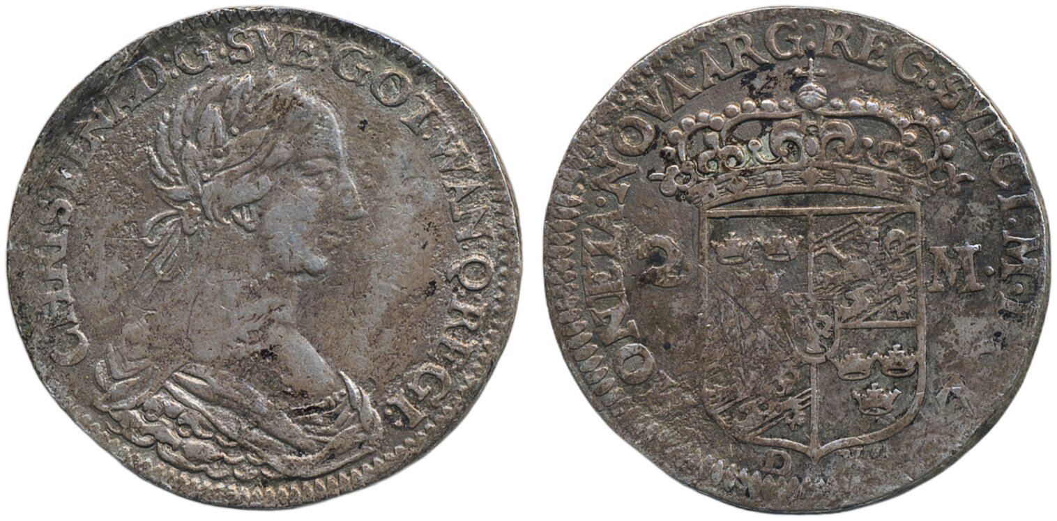 Coins, Sweden. Kristina, SM 63, 2 mark 1650. 9.48 g. Stockholm. Light corrsion. 1+.