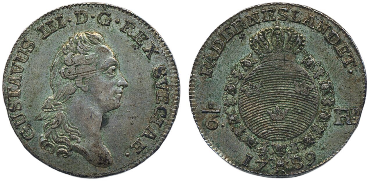 Coins, Sweden. Gustav III, SM 87, 1/6 riksdaler 1789. 6.22 g. Stockholm. 1/1+.