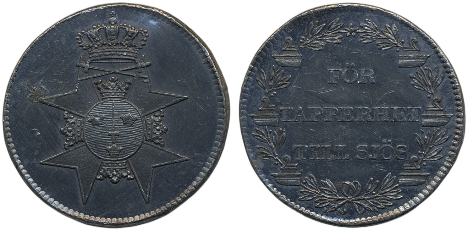 Medals, regal, Sweden. Karl XIII, Hyckert II:282:27, För tapperhet till sjöss/For bravery at sea. Medal (cast) in tin, 31 mm, 8.88 g. SKM 31. R. Scratches, edge nick. 1+/01.