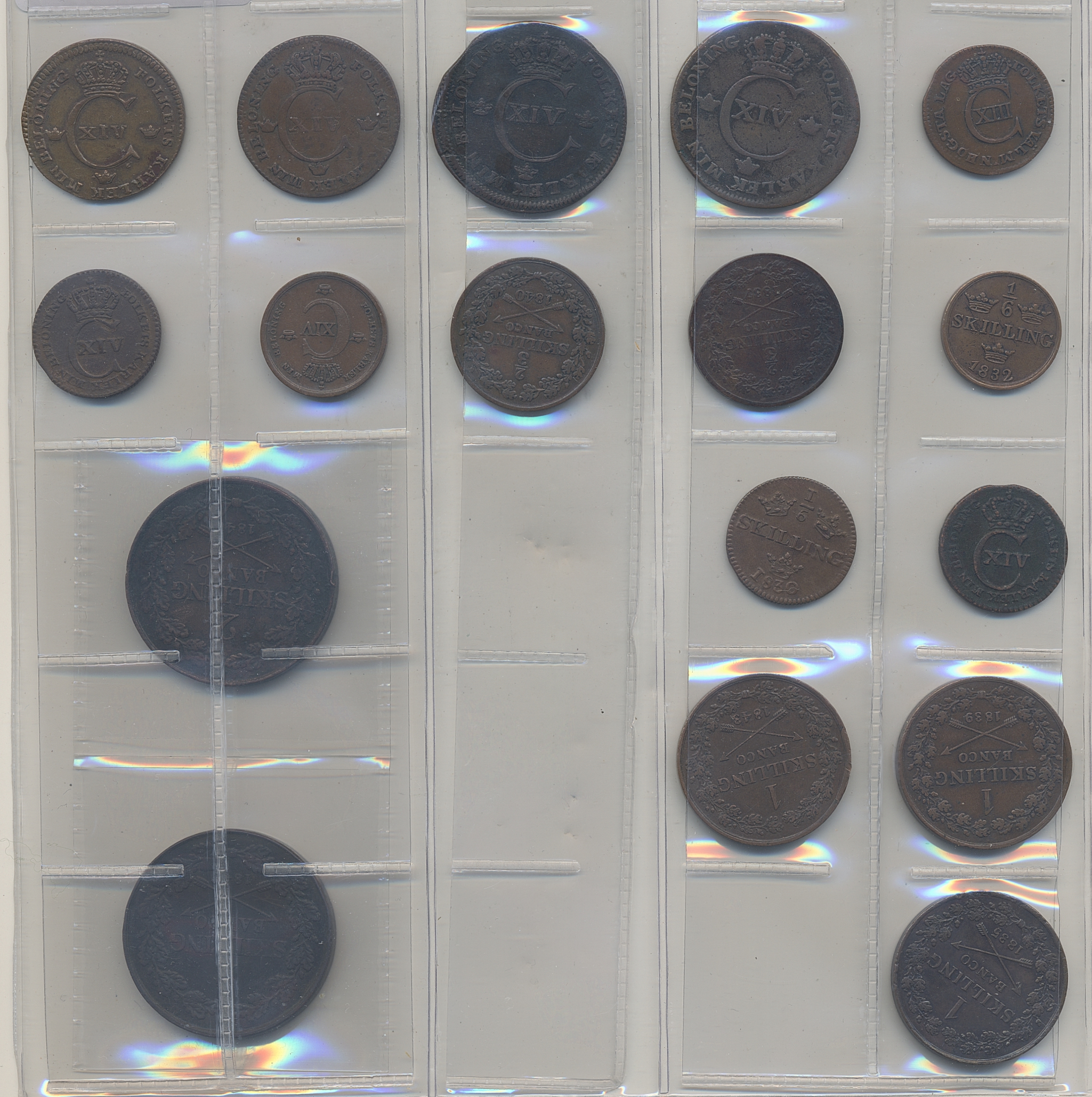 Coins, Sweden. Karl XIV Johan, Collection of 17 copper coins. Please inspect! 1-01.