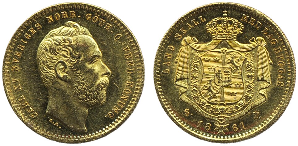 Coins, Sweden. Karl XV, SM 2, 1 dukat 1861. Scratch. 1+/01.