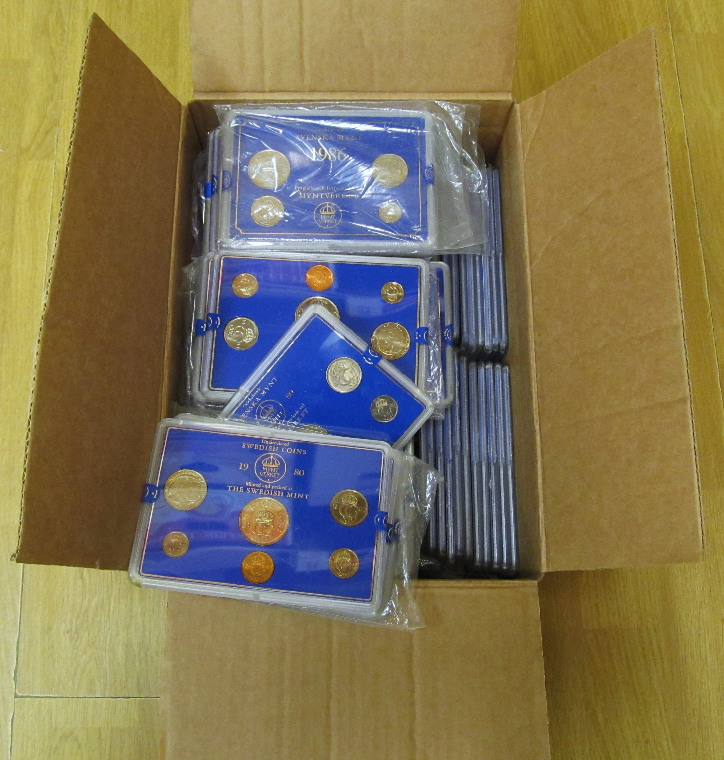 Coins, Sweden. One box with 100 year-sets, 1979–2009. 0. Approx. 9 kg.