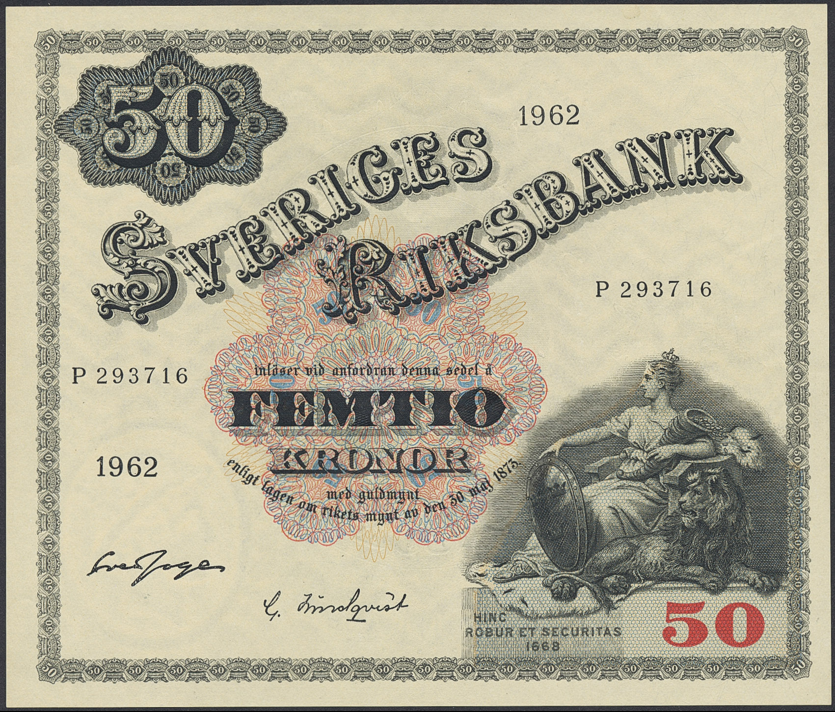 Banknotes, Sweden. SF T10:7, 50 kronor 1962. P293716. Not folded. 0.