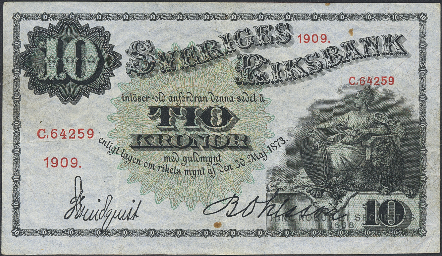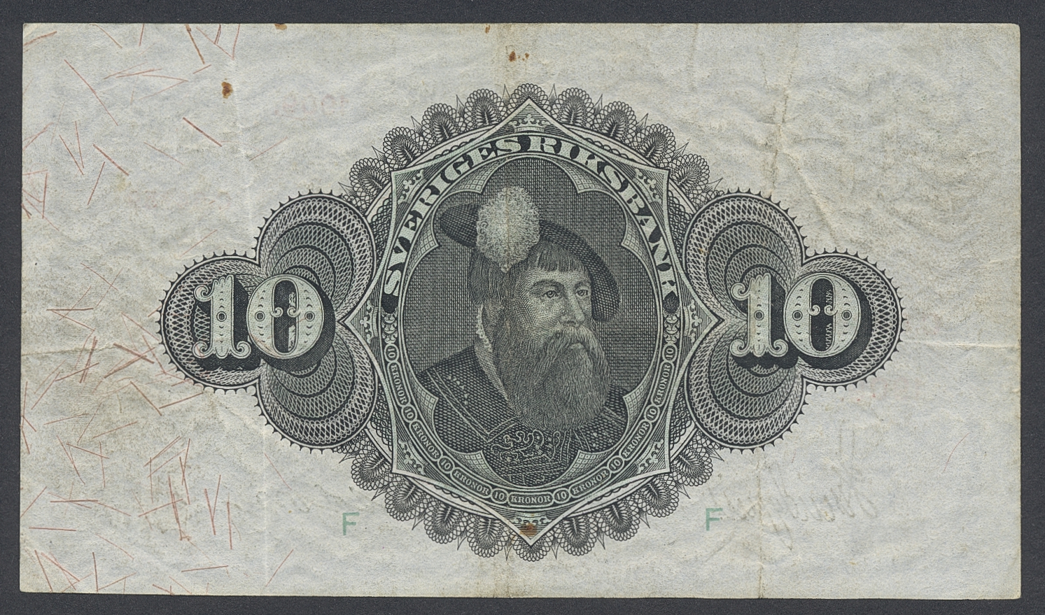 Banknotes, Sweden. SF R4:4, 10 kronor 1909. Small spots. 1/1+.