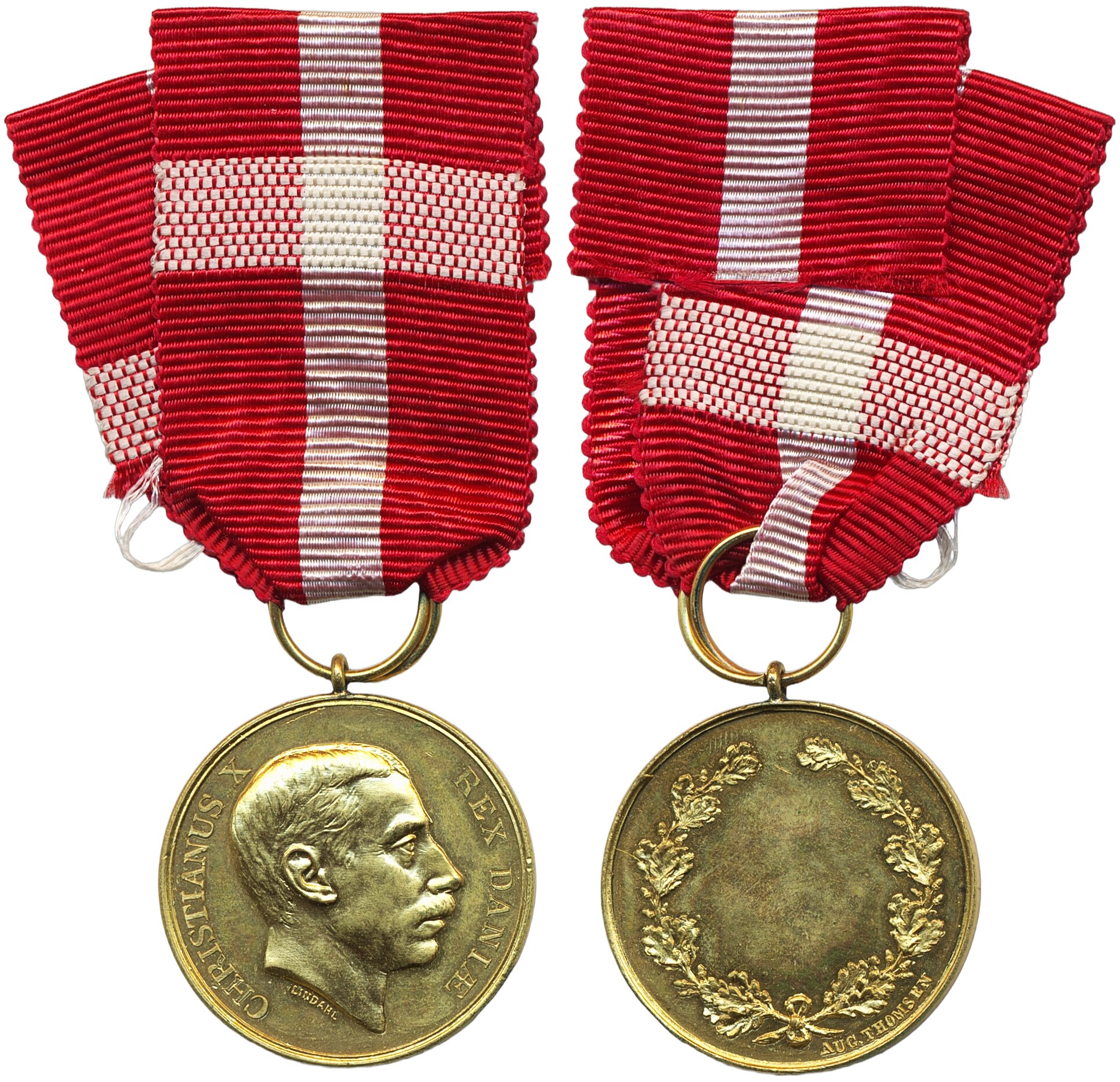 Medals, regal, Denmark. Christian X, Royal Medal of Recompense gilt silver (without crown) medal with original ribbon. 10.21 g with ribbon. 01.