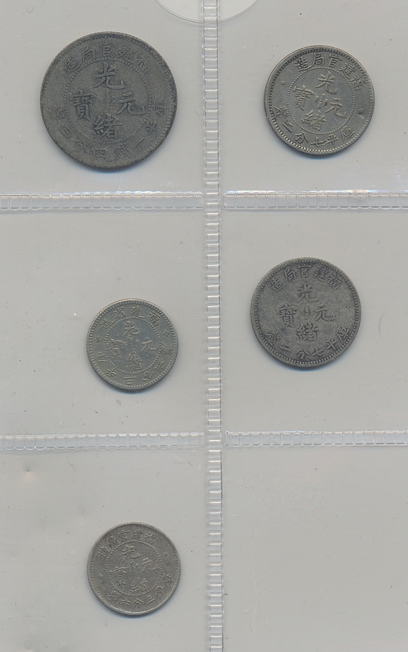Coins, China, mixed. Small group of five silver coins. F-XF.