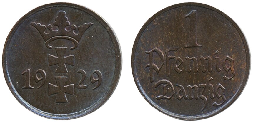 Coins, Poland, Danzig. KM 140, 1 pfennig 1929. XF-UNC.