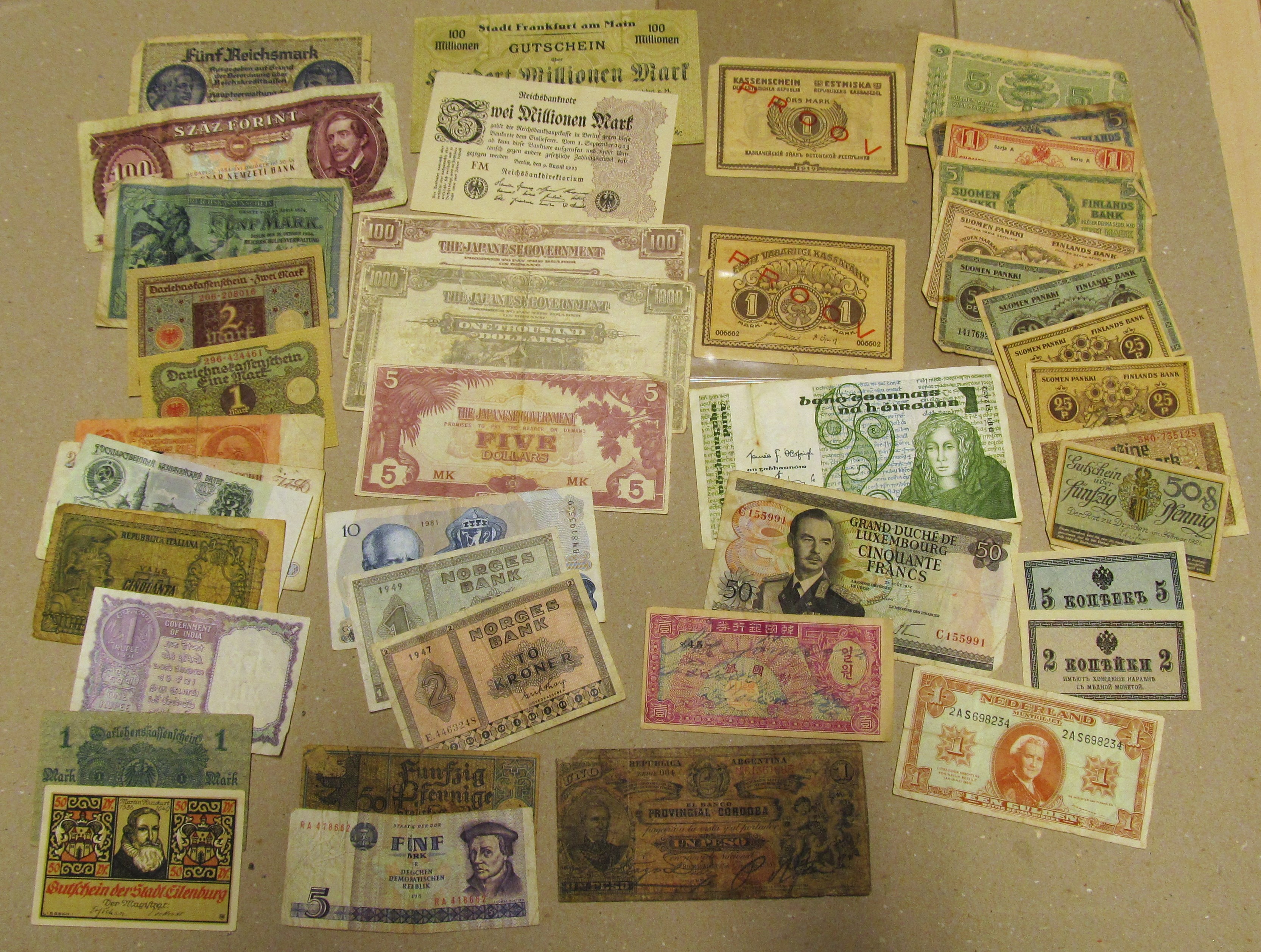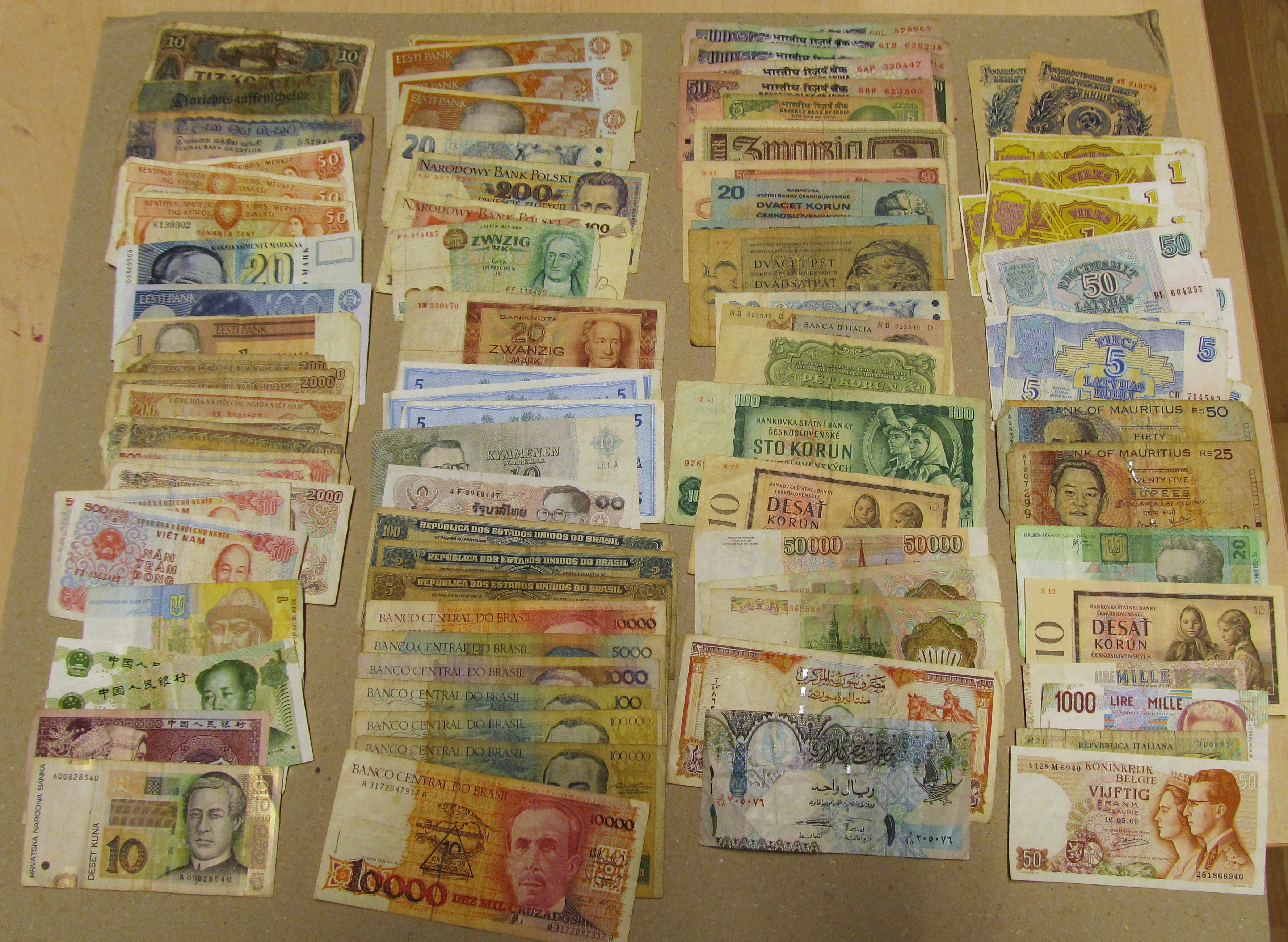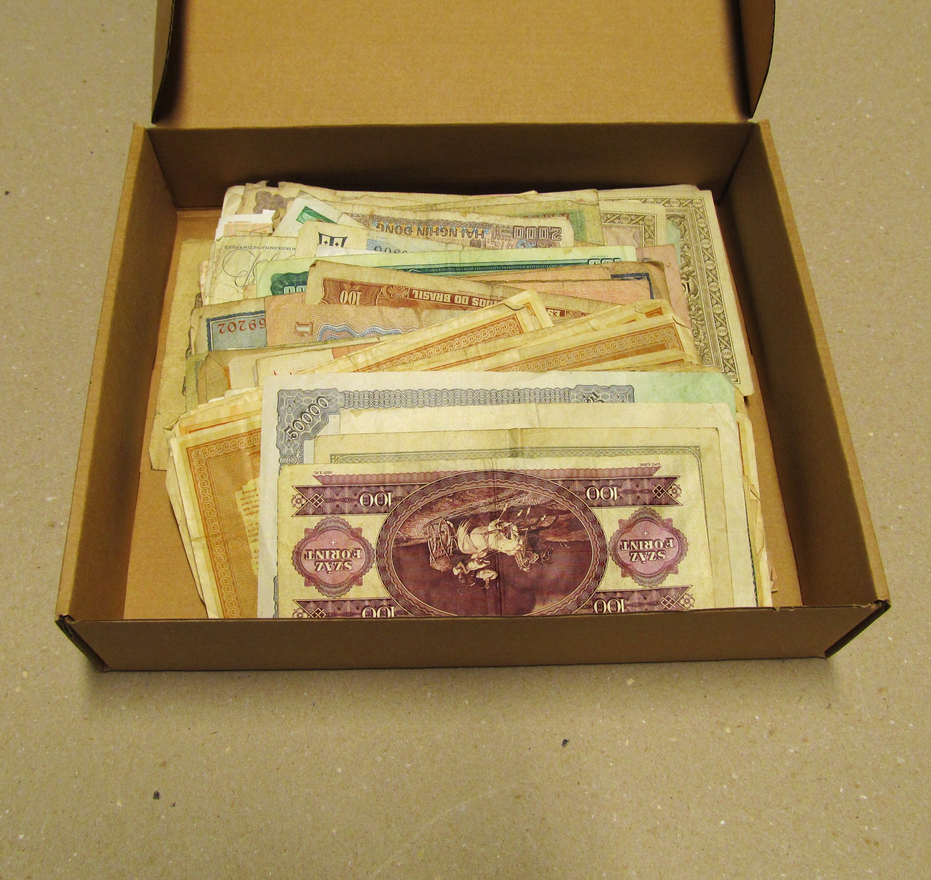 Banknotes, ALL WORLD. One box with 240 banknotes, 1900s, mixed quality.