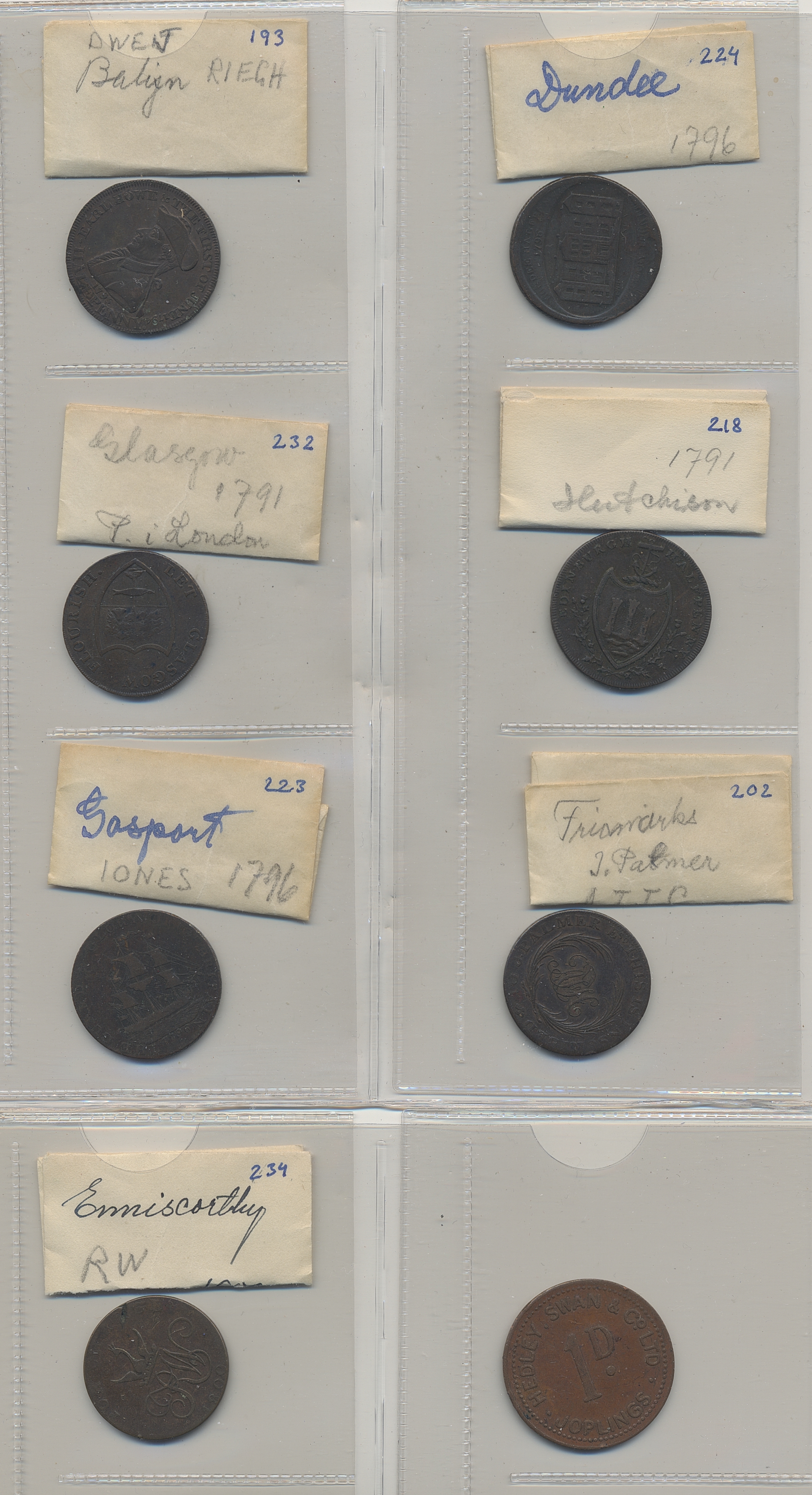 Tokens, Britain. Lot. Twelve tokens from late 18th century. The entire lot is presented at www.philea.se. Mixed quality.