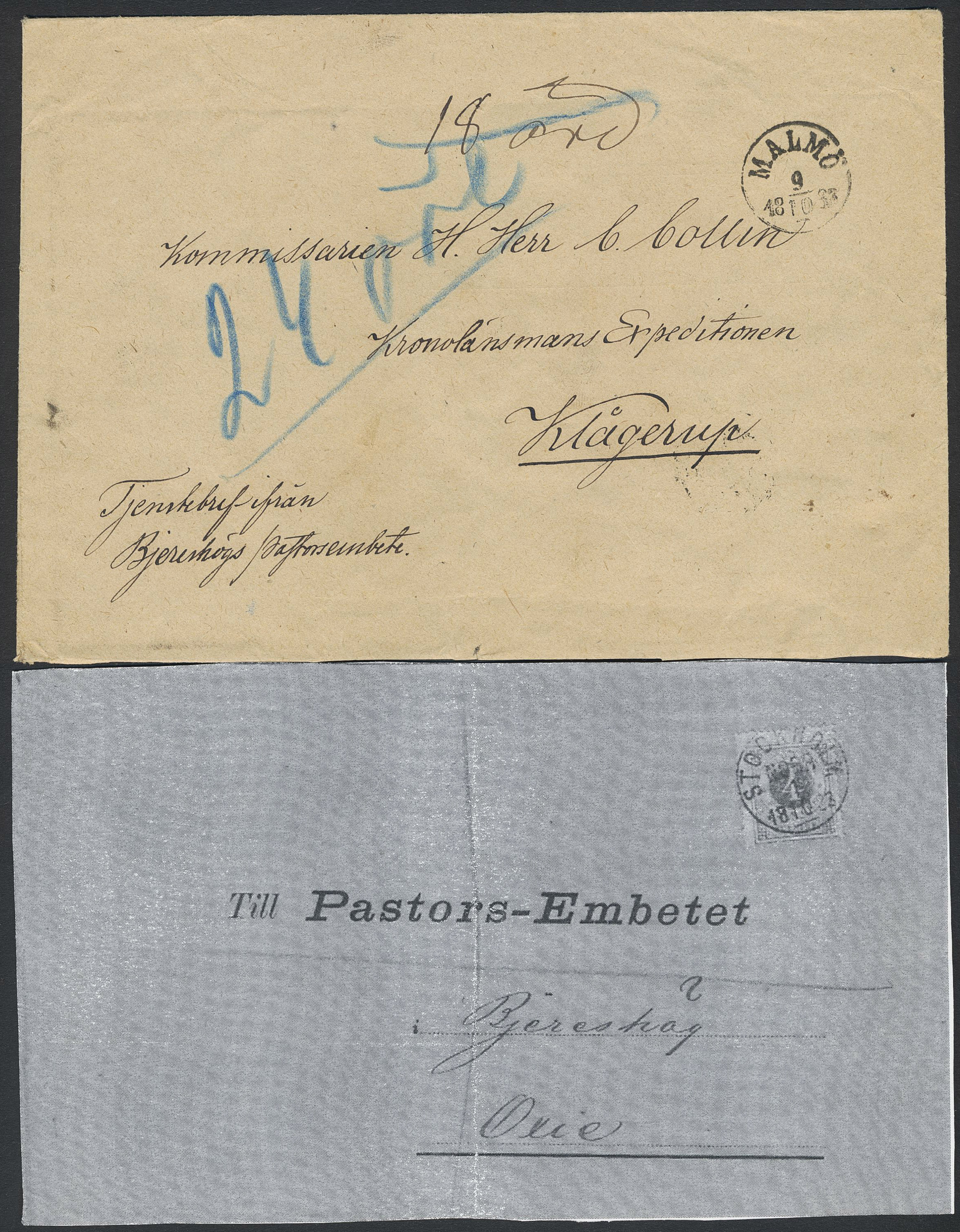 Sweden. Lösenförsändelser. Cover used twice, the inside is franked with F29, then folded outside in and sent unpaid from MALMÖ 9.10.1883 to Klågerup. Postage due changed from '18 öre' to '24 öre'. Interesting item.