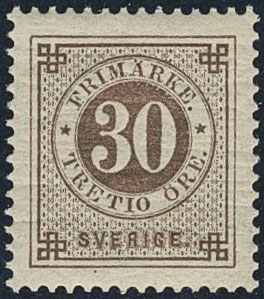 Sweden. ★, 30 öre brown. Superb–EXCELLENT. F 2700+.