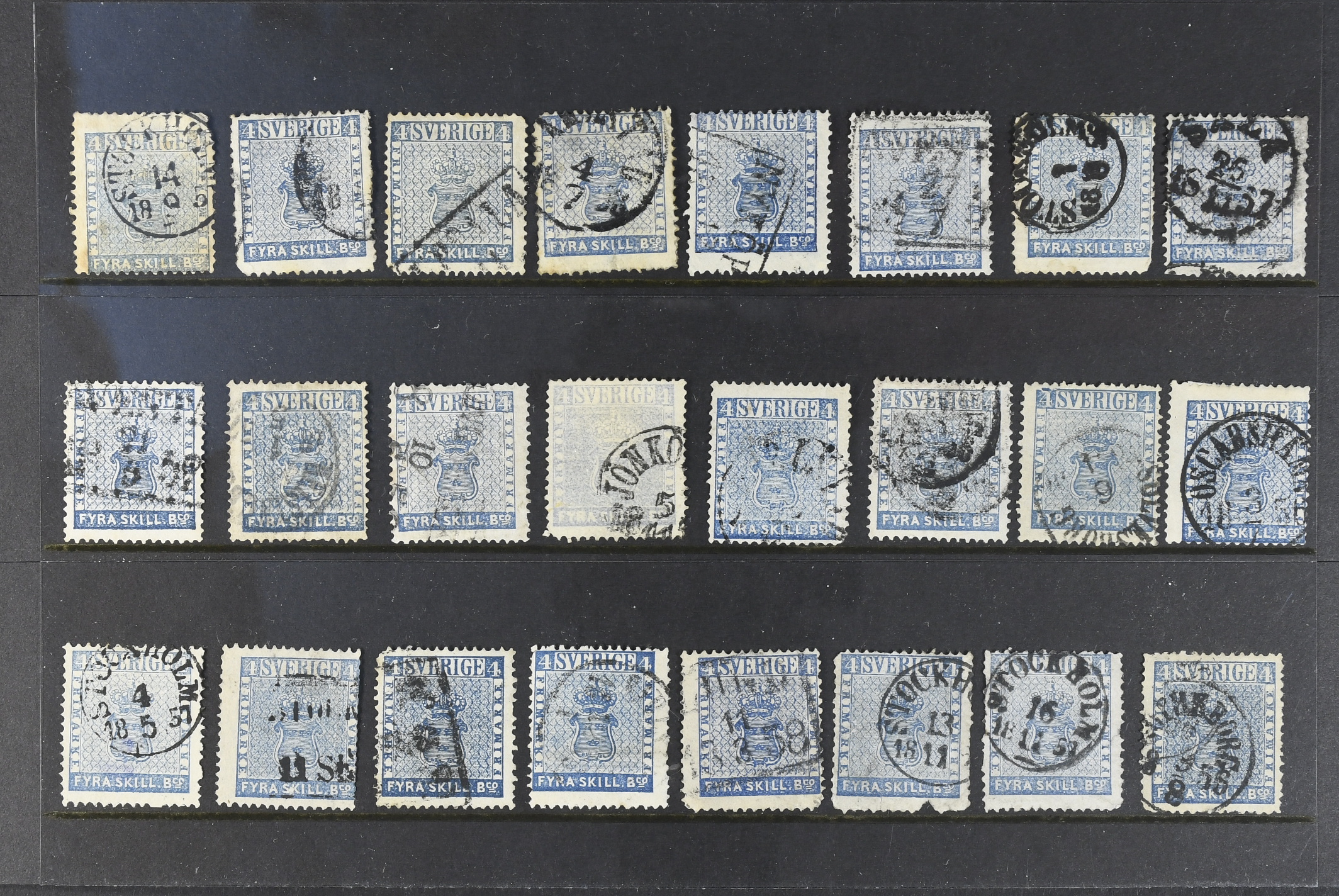 Sweden. Facit 2 used, 4 skill blue. 24 ex. in very mixed quality.