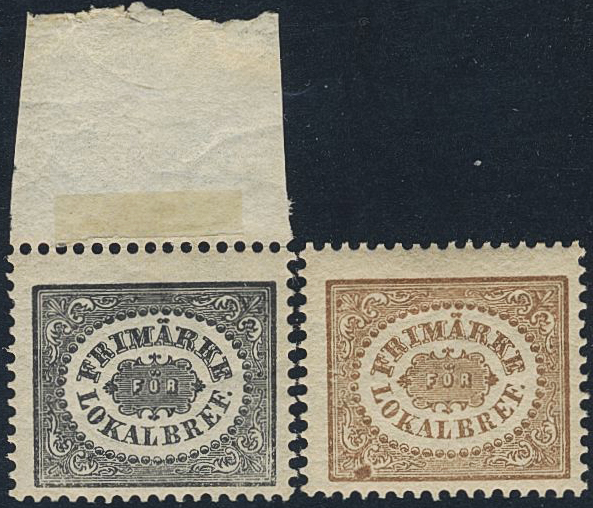 Sweden. Facit 6, 13N2 ★, 3 öre black and brown, reprint perf 13. Two nice ex. SEK 3600