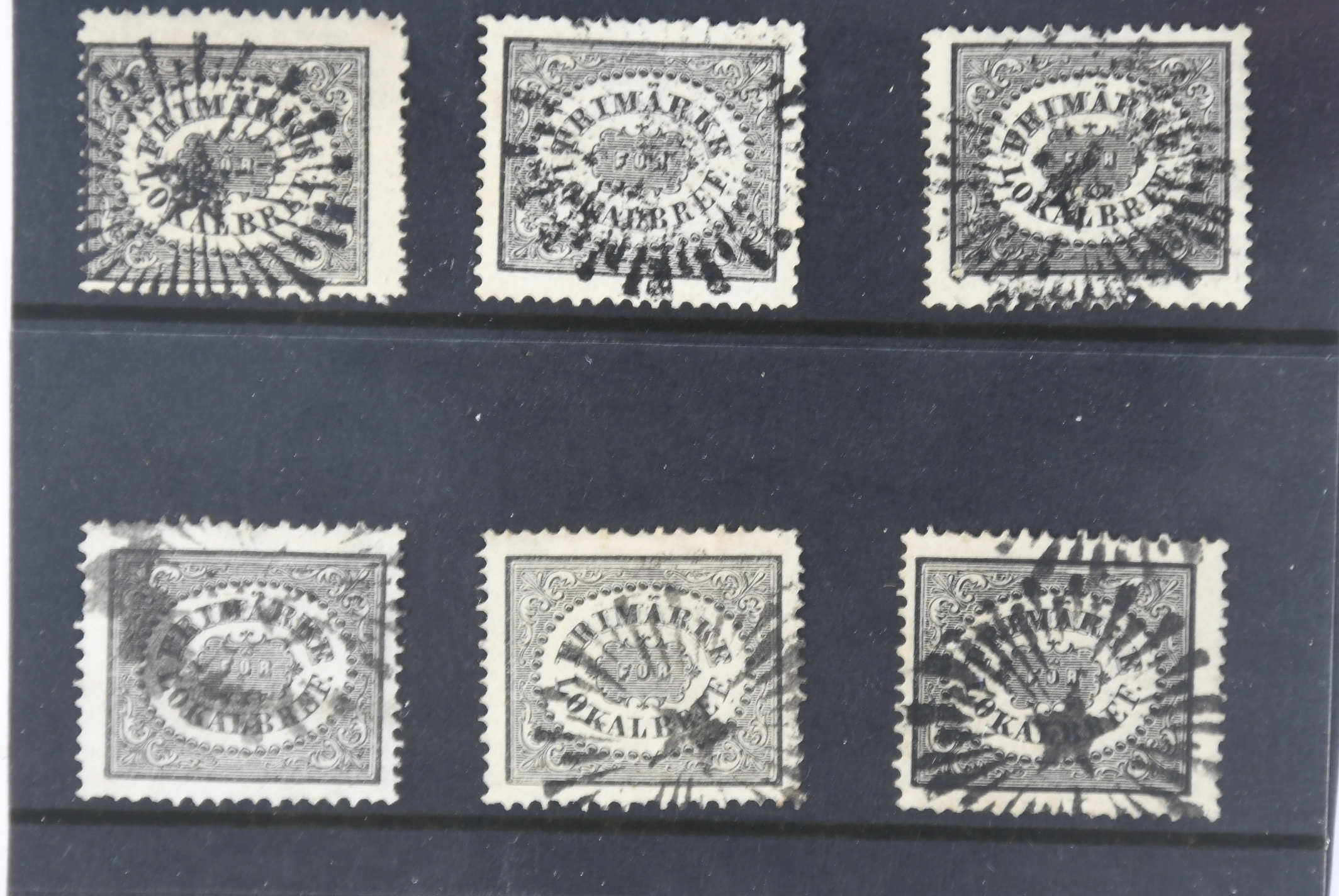 Sweden. Facit 6B used, (3 öre) black. 6 ex. in mixed–good quality.