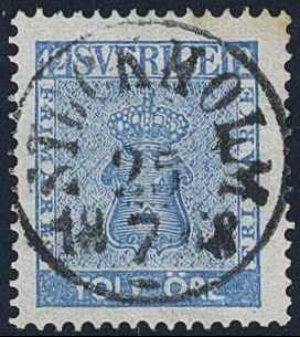 Sweden. Facit 9d3 used, 12 öre light blue, perforation of 1865. EXCELLENT cancellation STOCKHOLM 25.7.1868. Allegedly, position 89 plate 8.