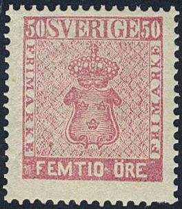 Sweden. Facit 12h ★, 50 öre rose. Short perf., otherwise very fresh. SEK 5500