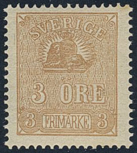 Sweden. Facit 14B ★★, 3 öre brown, type II. Good centering.