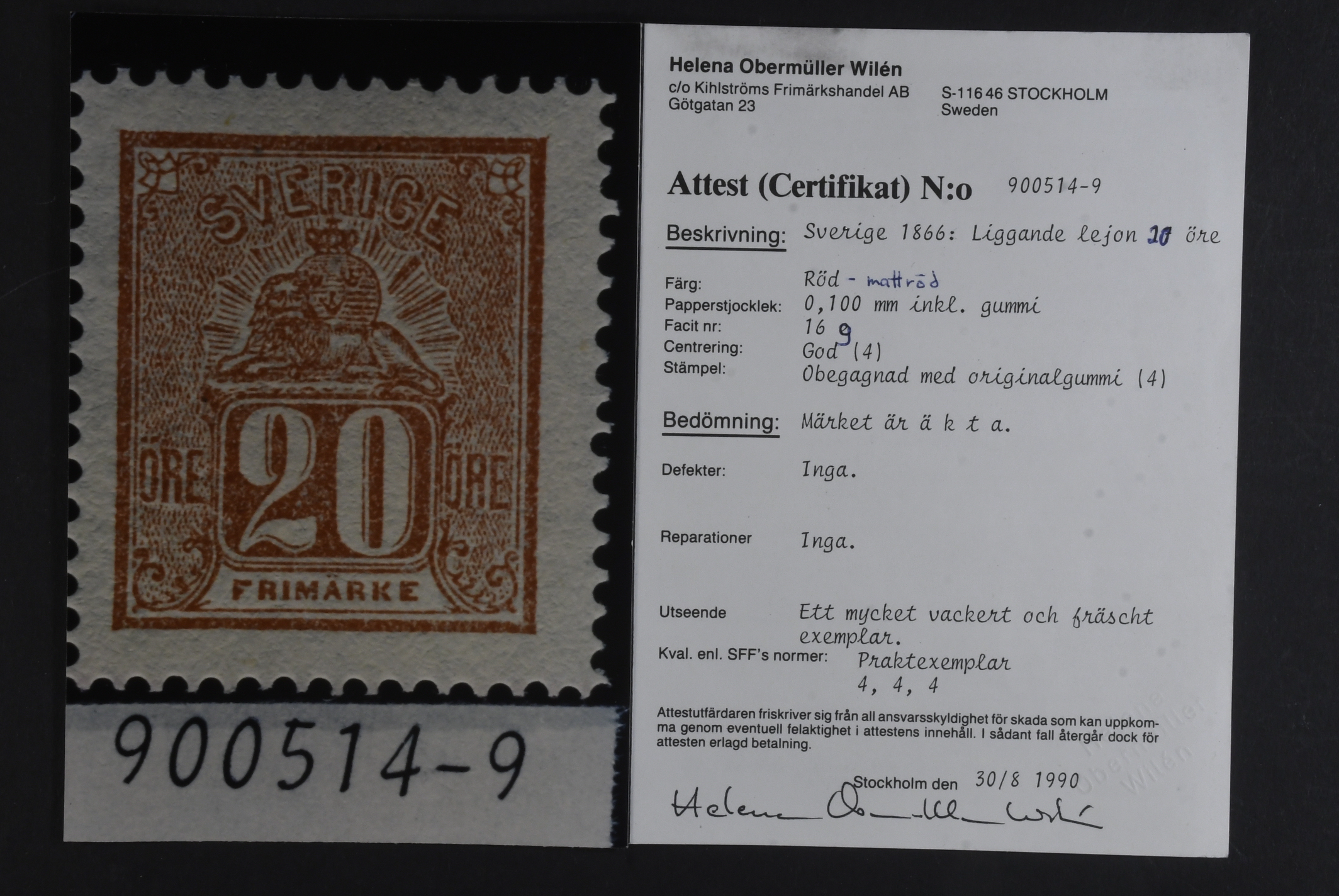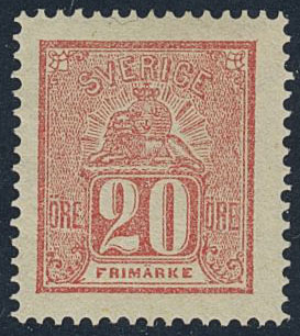 Sweden. Facit 16g ★, 20 öre red-dull red. Certicate HOW (4.4.4).