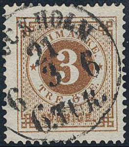 Sweden. Facit 17c used, 3 öre dark orange-brown on white paper. Very beautiful example canclled STOCKHOLM 6.TUR 21.3.