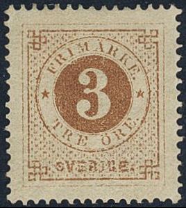 Sweden. Facit 17d ★, 3 öre orange-brown on yellowish paper. Superb–EXCELLENT.
