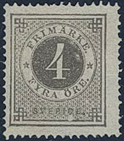 Sweden. Facit 18a ★, 4 öre dark grey. Opinion (shade) by O.P. SEK 4500