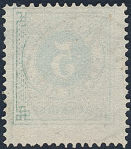 Sweden. Facit 19v2 used, 5 öre green, partial set-off variety. Cancelled HALNA 8.6.1878. Slightly short perf.