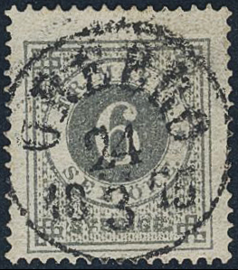 Sweden. Facit 20g used, 6 öre olive-grey. EXCELLENT cancellation ÖREBRO 24.3.1875.
