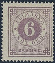 Sweden. Facit 20j ★, 6 öre lilac. Fresh example with opinion (shade) by O.P. SEK 4000