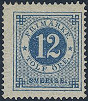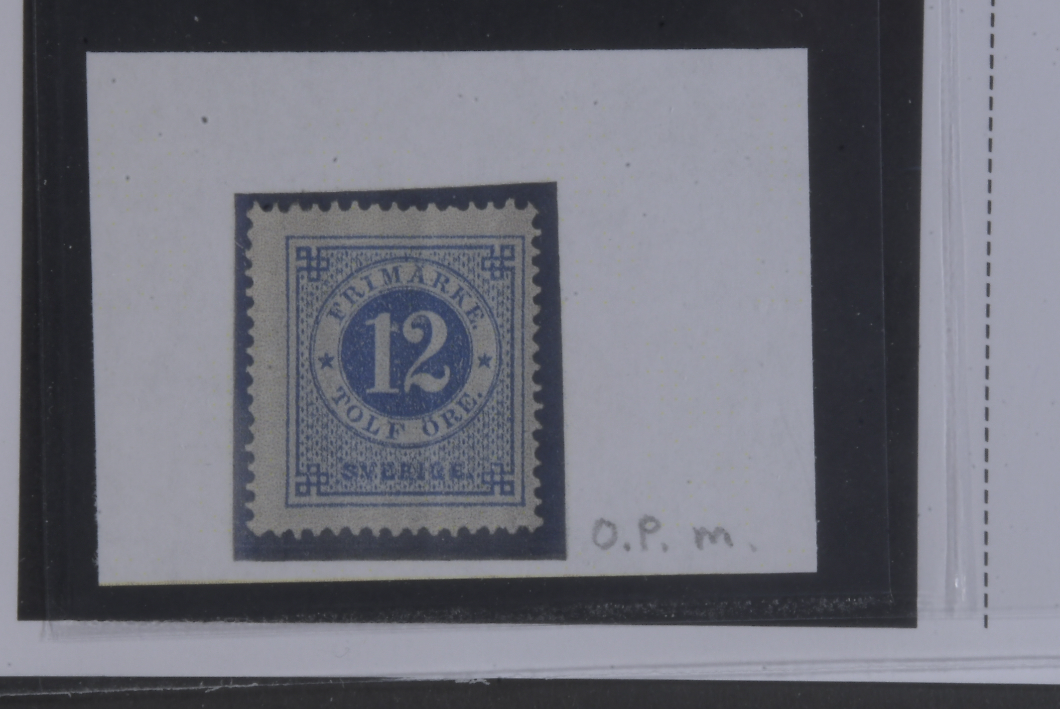 Sweden. Facit 21m ★, 12 öre blue. Very fine. Opinion (shade) by O.P. SEK 2200