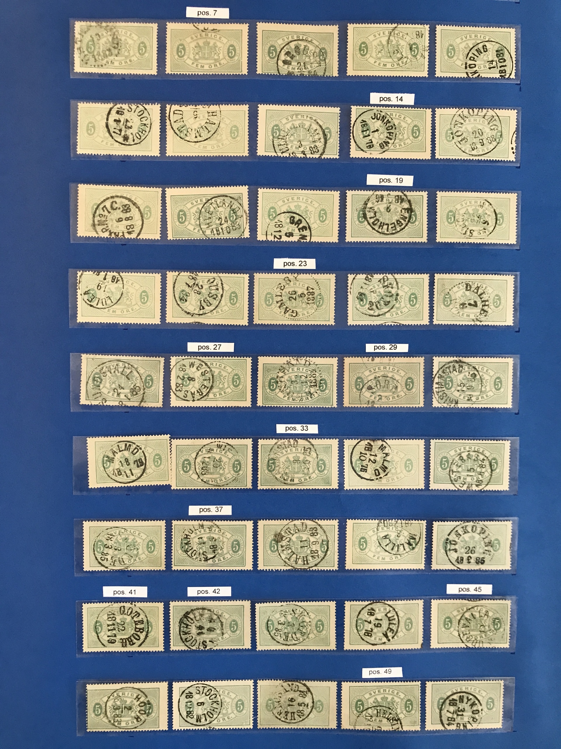 Sweden. Official Facit Tj3 used, 5 öre green, perf 14. Complete plate pos.1–50 Good quality. SEK 20000++