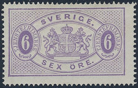 Sweden. Official Facit Tj4a ★, 6 öre reddish violet, perf 14. Opinion (shade) by O.P. SEK 2200