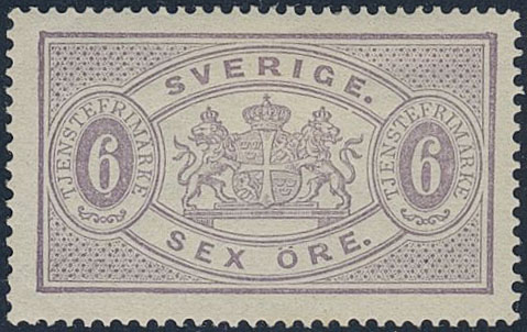 Sweden. Official Facit Tj4g ★, 6 öre deep lilac, perf 14, yellowish paper. Superb. Opinion (shade) by O.P. SEK 3300