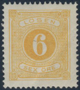 Sweden. Postage due Facit L4b ★★, 6 öre yellow, perf 14. Opinion (shade) by O.P. SEK 3500