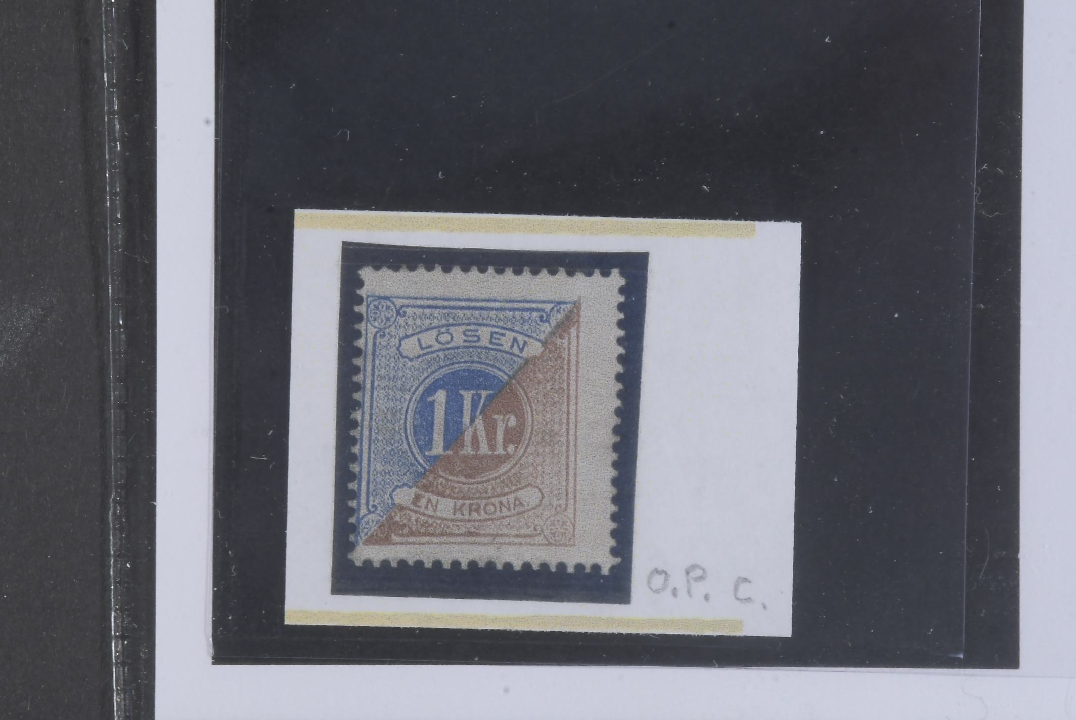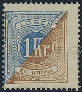 Sweden. Postage due Facit L10c ★, 1 Kr blue/orange-brown, perf 14. Owner mark on reverse. Opinion (shade) by O.P. SEK 2800
