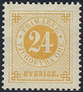 Sweden. Facit 34 ★, 24 öre yellow. Superb. SEK 950