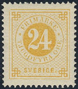 Sweden. Facit 34j ★, 24 öre orange-yellow on calendered paper. Superb.